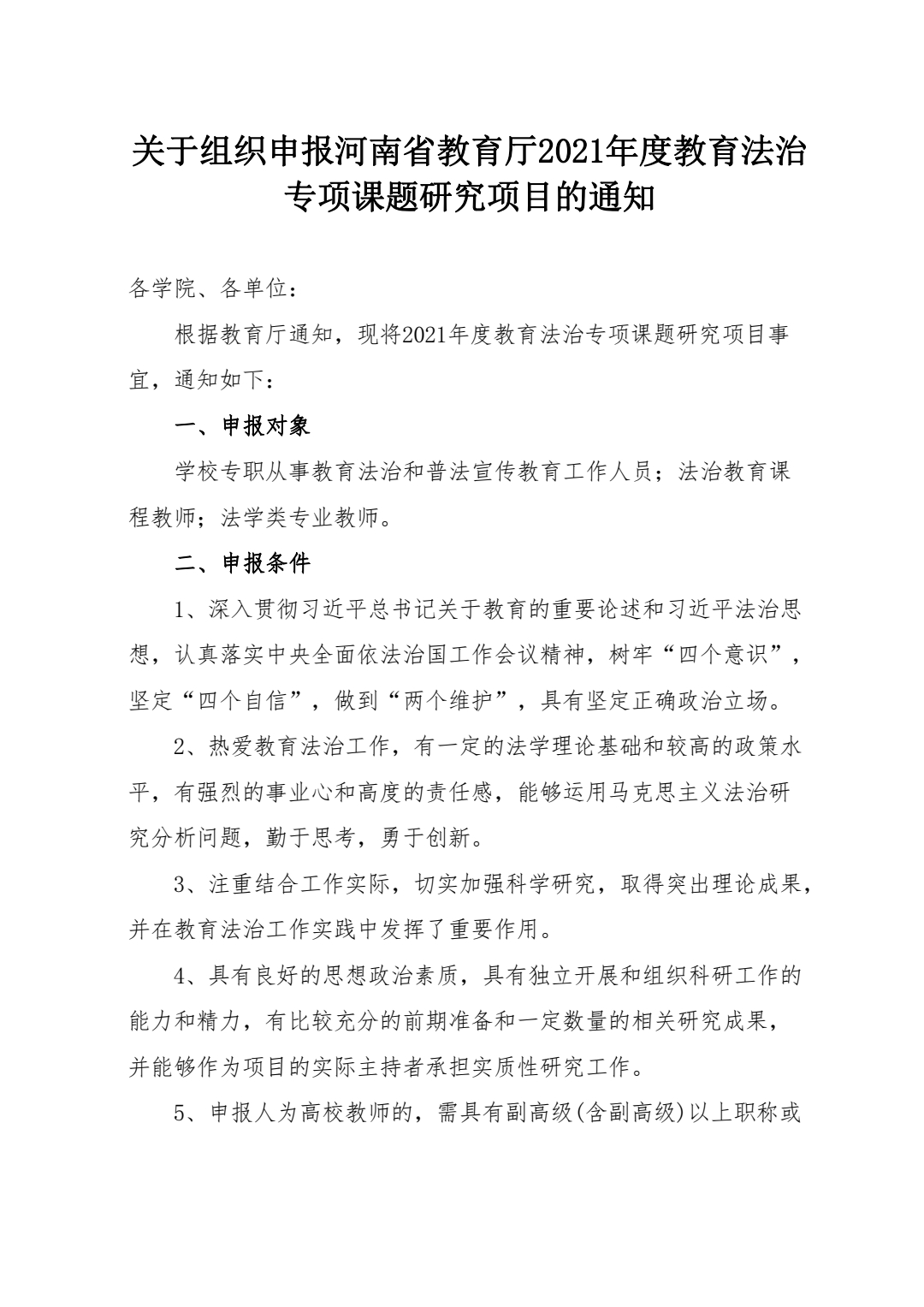 1、河南省教育厅2021年度教育法治专项课题研究项目指南 //xing8top.com/uploads/soft/211020/1_1746515401.pdf(点击下载)