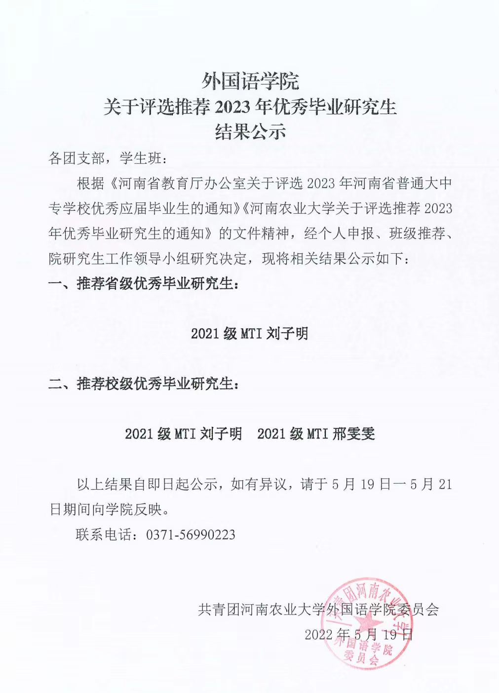 杏吧视频 关于评选推荐2023年优秀毕业研究生结果公示