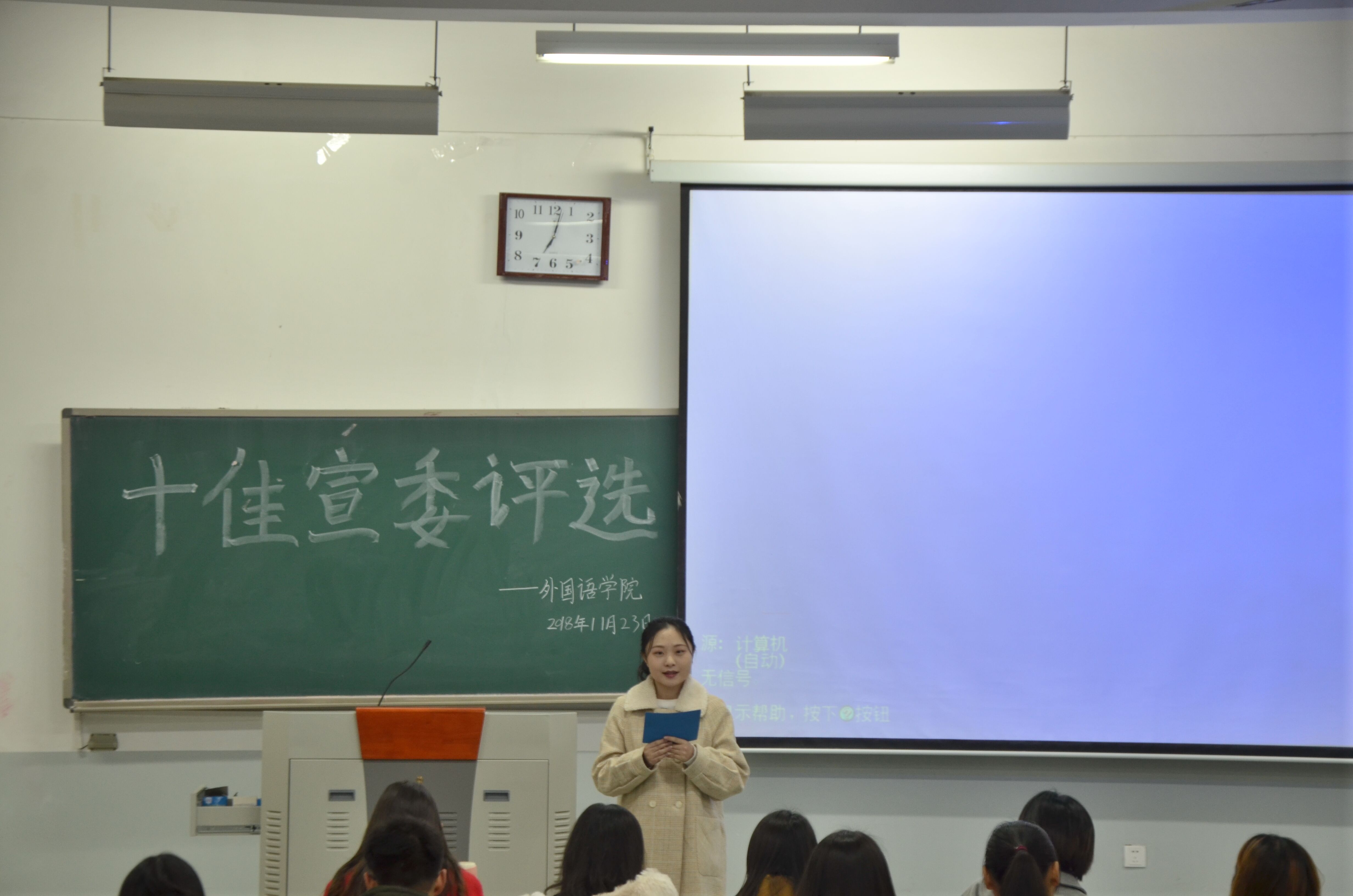本网讯(审稿:王颖 供稿:饶芝玉)为加强班级建设,提高宣传委员的工作积极性,进一步推动学院宣传工作的开展,11月23日晚上7点,杏吧视频 于龙子湖校区繁塔楼C206教室举办十佳宣传委员评选活动。主要学生干部出席此次活动。