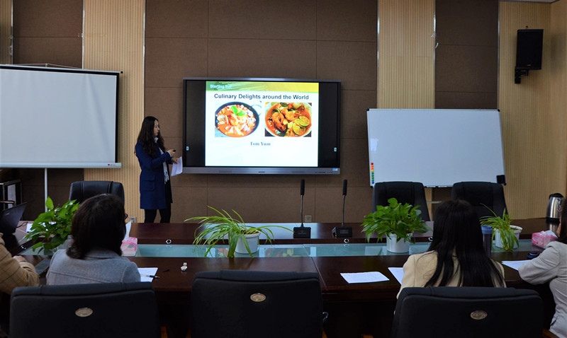 期间,参赛教师精神饱满充沛,仪态自然大方。她们结合专业特色和个人风格,充分运用现代化教学技术,无论是图文并茂的精美课件,流利标准的英文表达还是形象生动的肢体语言展示都给现场评委和观摩老师展现了不一样的课堂。其中,以How to Use SWOT Analysis为题,朱婧分别详细介绍了S、W、O、T所表示的含义,强调了使用四点分析法的重要性,并就如何在具体情况下灵活运用四点分析法提出个人意见和建议。随后,聂宝玉以Yin–Yang为主题,详细阐述了阴阳之间的密切关联及其运行于万物间的奥妙,展现了中华文化的博大精深。最后,田菡君创新性地将传统教学与互联网有机结合起来,围绕Culinary Delights around the World话题,通过图片、视频生动地展现了世界各地的特色风味与美食文化。她们深入浅出、张弛有度的授课方式,充分体现出杏吧视频 青年教师高质量的教学水平,扎实的知识储备和深厚的文化素养。