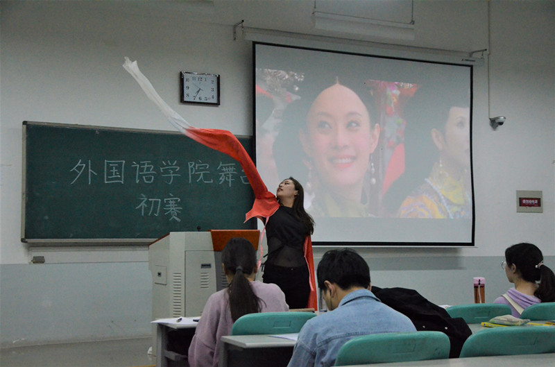在主持人宣读评分标准之后,比赛正式开始。17级英语四班带来莎士比亚“四大喜剧”之一的《皆大欢喜》,生动形象地展现了浪漫爱情与真挚友情的美好,宣扬了人世间的真善美。17级商务英语三班用一场《冰雪奇缘》把观众引入梦幻童话世界,将艾莎和安娜的姐妹情深娓娓道来。18级日语二班创新地将《人民的名义》和《神探狄仁杰》结合改编,精心制作《迷笛的谜底》,以侯亮平的日记及狄仁杰的卷宗为串联两个时空的探案线索,讲述了当代检察官维护公平正义和法制统一、查办贪腐案件的故事。随后,依次上场的参赛班级带来了《大话西游》、《雷雨》、《皇帝的新衣》等经典话剧,剧情跌宕起伏,趣味横生。参赛班级用精彩非凡的表演、标准流利的语言表达,营造了浓郁的文化氛围,为全场观众带来一场-精彩的视听盛宴。评委们根据现场表现力、发音流畅度、表现内容等方面对参赛班级进行评分,并评出进入决赛的班级队伍。
