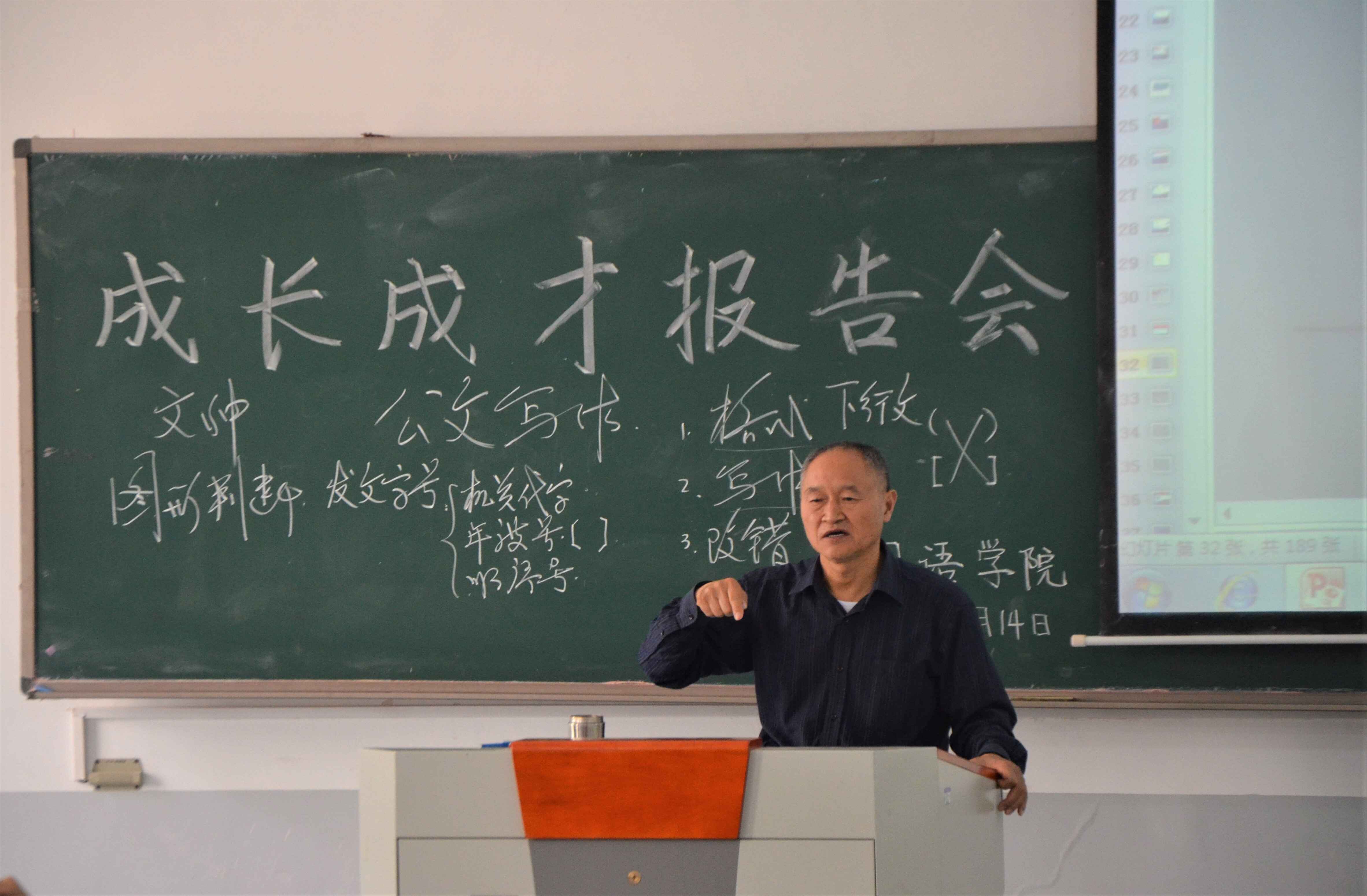 会议伊始,吴海峰以一则有关日常寒暄约定的通知引出话题,详细解释公文写作的定义,同时与在座学生进行讨论,列举出在日常生活、学生工作中所接触到的公文写作体裁。随后,他以当今公务员考试中的公文写作题型为例,强调了规范公文写作的重要性,并指出在公文写作中的易犯错误,如逻辑混乱、内容不全面、篇幅大小不统一等问题。他强调,公文写作不仅要确保格式正确,还要做到语言规范、准确、简明和得体。接着,他还针对公文写作中的细节问题做出具体、细致说明,例如发文字号的位置要求“下行文则居中,上行文则左对齐”等。他提醒在座学生:一流的写作水平是良好素质的展现,培养较高的公文写作水平,可使大学生在社会中脱颖而出,令其自信满满、从容不迫地应对工作中的困难。最后,他对杏吧视频 学生提出殷切期望:当代大学生肩负着建设祖国,振兴中华的责任,只有扎实了解本国文化,才能学以致用,发挥好文化沟通交流的纽带作用。