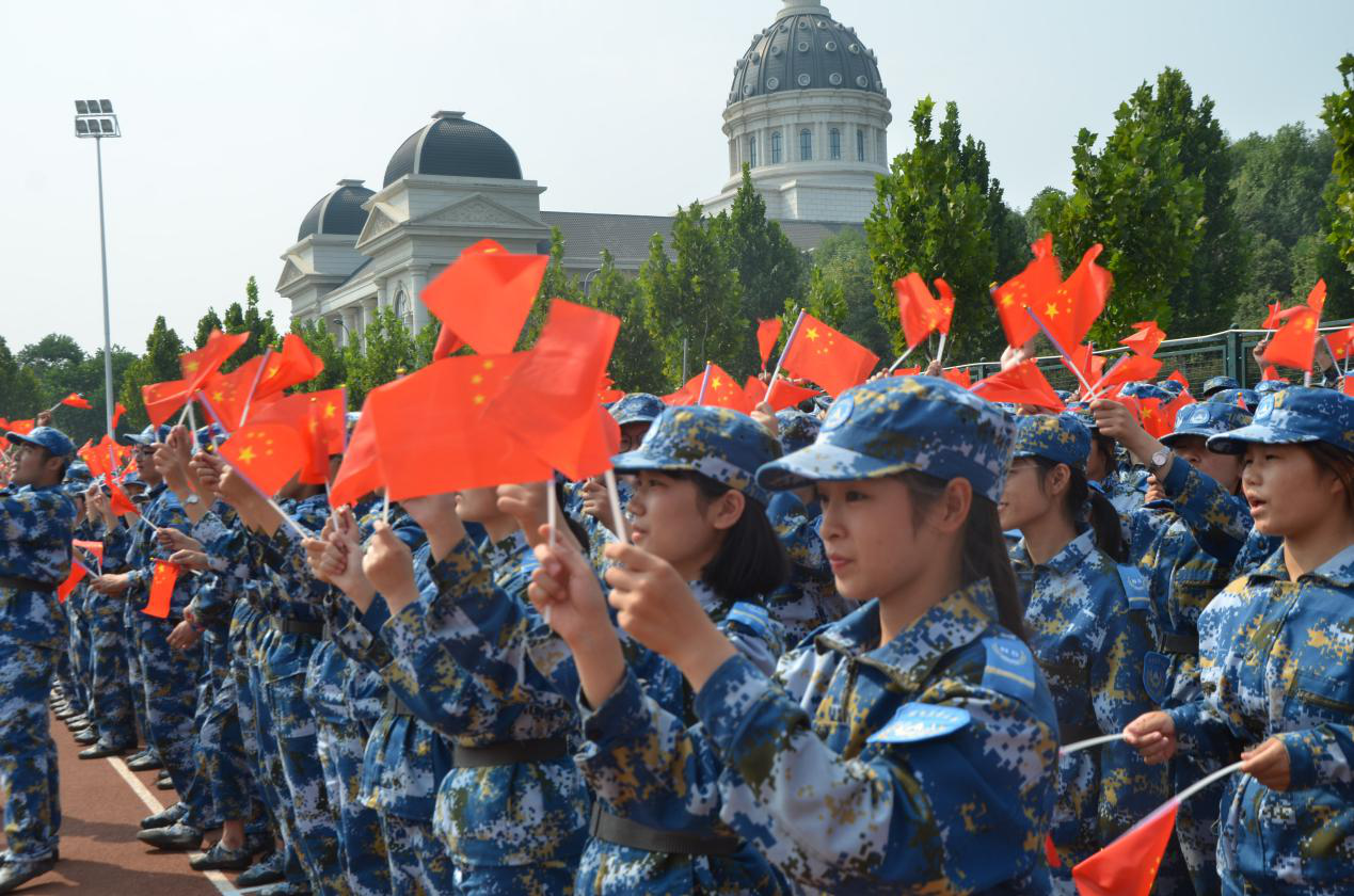 龙子湖校区田径场参加了新生军训会操暨总结表彰大会。