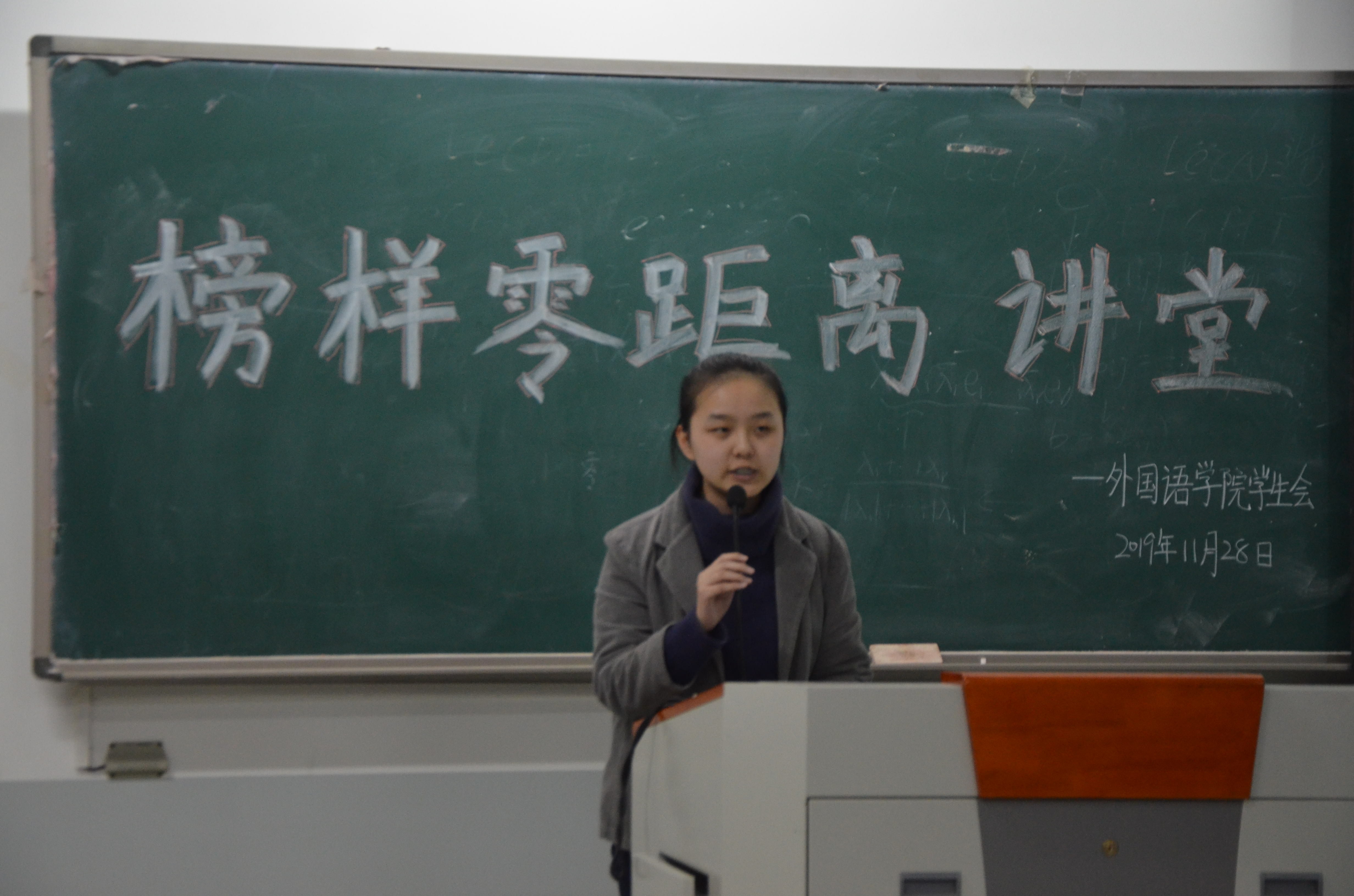 讲座伊始,四位主讲人围绕参加竞赛的重要性、高效学习方法和丰富大学生活等话题展开叙述。首先,曹锦秀向在座学生普及了大学期间考取的证书类别,并就英语学习的相关资料书籍、学习工具进行了热心推荐。随后,她向同学们逐一介绍了各部门工作的特点及要求,并建议同学们在学生工作中注重锻炼自身能力,积极拓宽交际面,促进自身全面发展。就英语学习前期打牢基础的重要性,王诗雨结合自身学习经历,从听力和阅读两方面给予了建议,她表示,英语学习不仅需要注重培养良好的语感,还要加强对英语文章及原著的阅读训练,扎实打好英语基础。