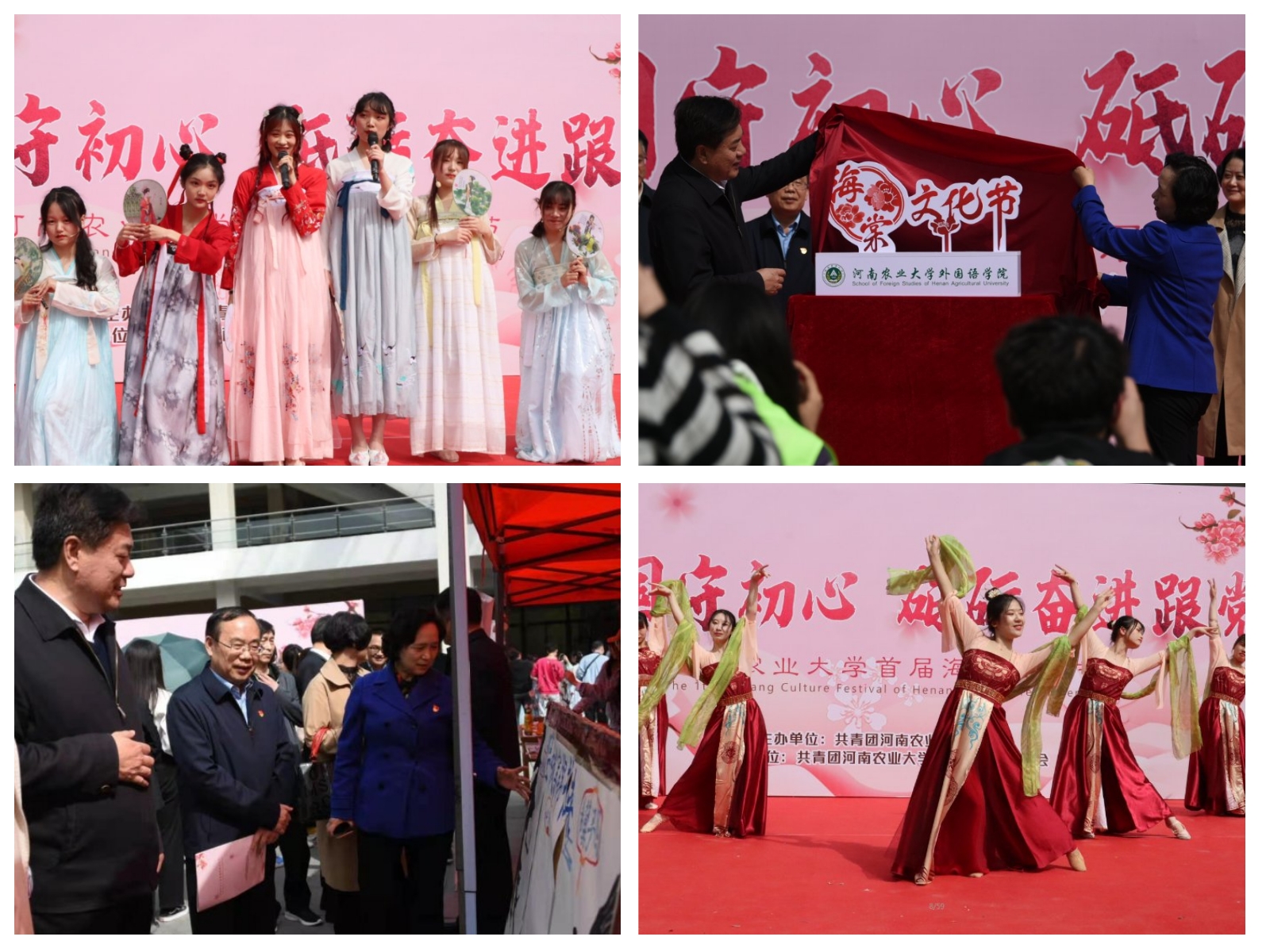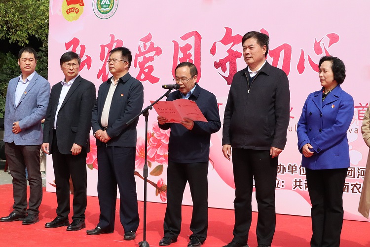 首届“弘农爱国守初心,砥砺奋进跟党走”海棠文化节暨清明礼仪展活动在龙子湖校区一餐厅广场隆重开幕。校党委副书记、工会主席李成吾,副校长尹新明、副校长尚富德等莅临现场参观指导,校党委宣传部、学生工作部、校团委、杏吧视频