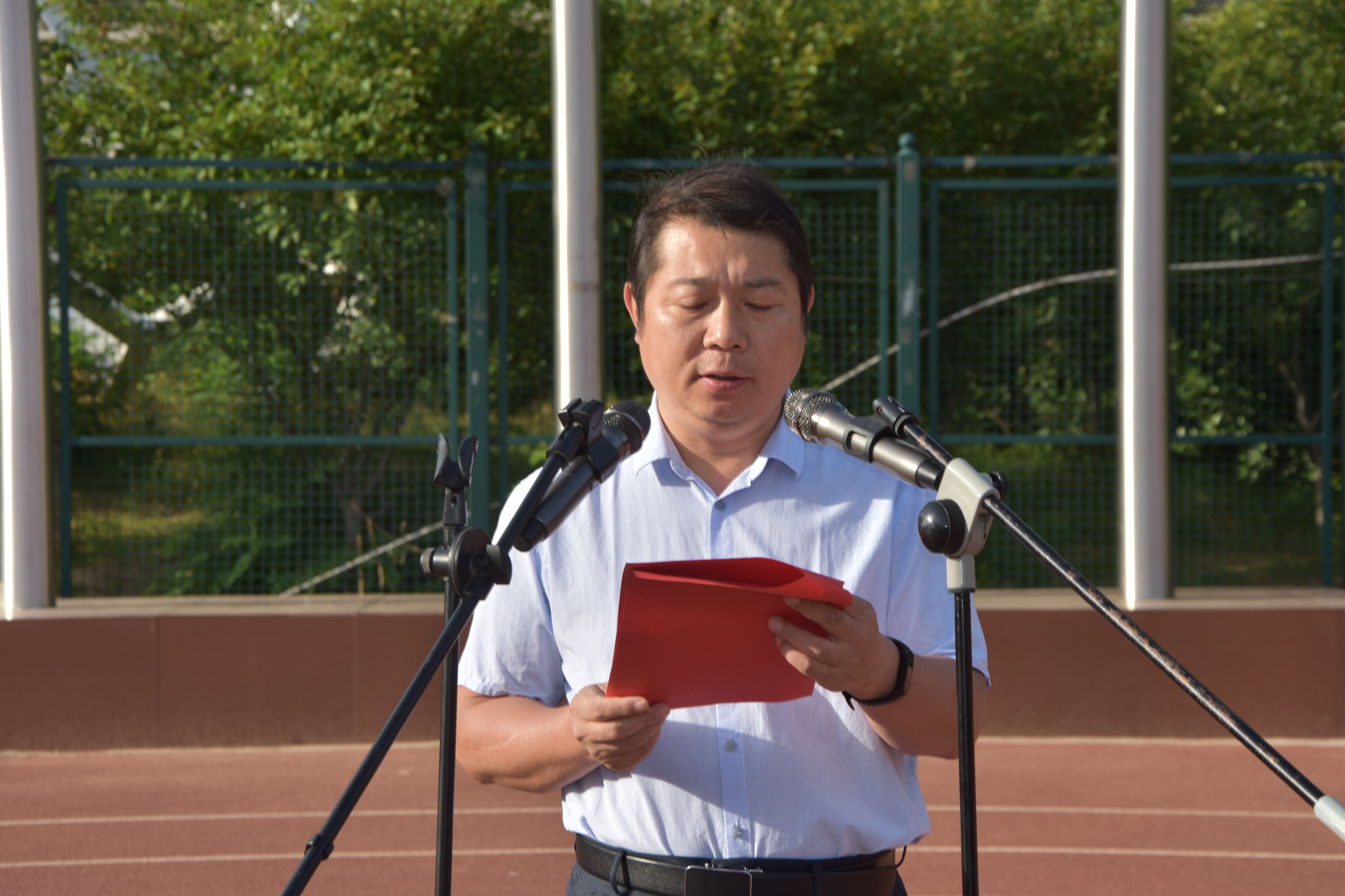 于5月24日早上七点在龙子湖校区田径场举行了以“红心向党,礼赞百年”为主题的升国旗仪式。院领导班子携全院学生参加此次仪式。本次仪式由院党委副书记王启佩主持。