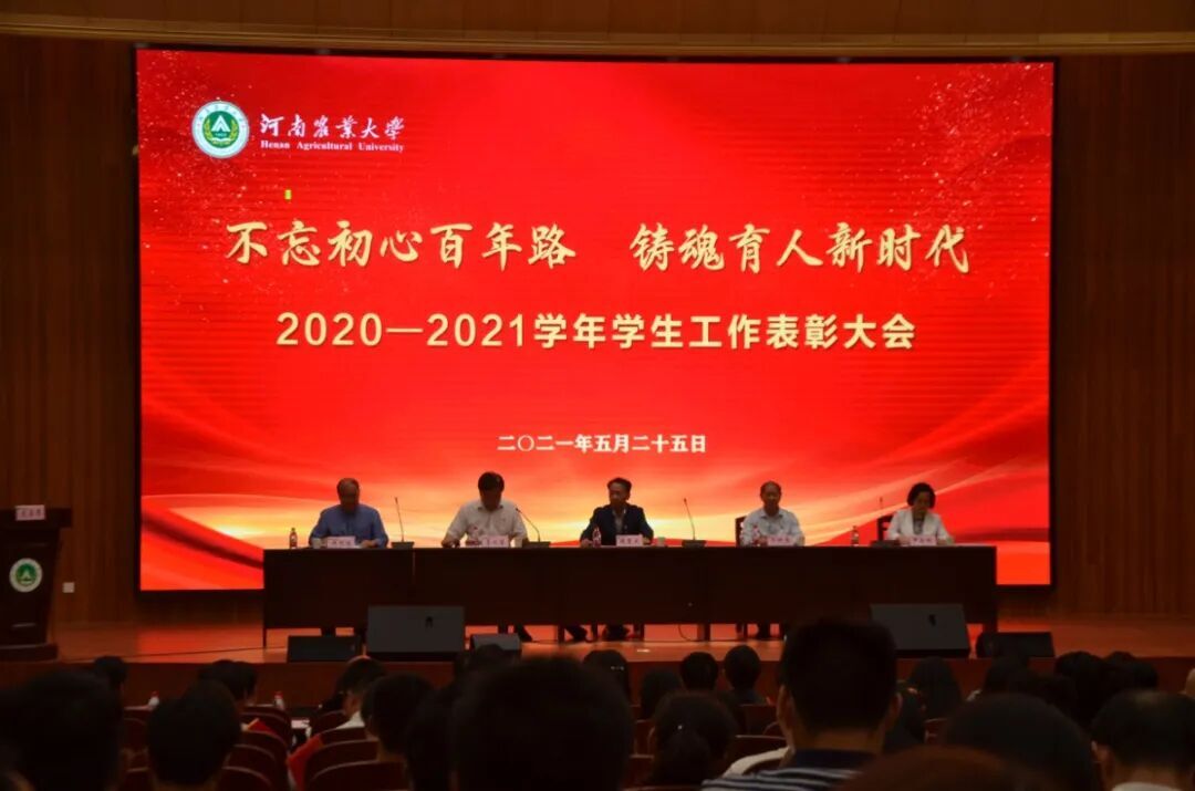 本网讯(审稿:陈桃 供稿:黄湘)5月25日晚七点,杏吧视频 在龙子湖校区图书馆一楼报告厅举行了“不忘初心百年路,铸魂育人新时代”2020-2021学年学生工作表彰大会。校党委书记魏蒙关、校长介晓磊等领导班子成员出席会议。杏吧视频 师生代表参加表彰大会。会议由校党委副书记、工会主席李成吾主持。