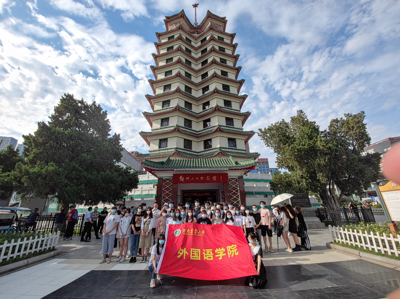 二七纪念塔始建于1971年,是为了纪念在1923年2月7日京汉铁路工人大罢工运动中牺牲的革命先烈们而建的双子塔。实践队员到达后,在讲解员的带领下有序进入塔内,怀着崇敬之情开始了参观学习之旅。首先,实践队员对京汉铁路大罢工”的相关历史背景进行追溯和学习,认识到二七纪念塔作为全国文物保护单位、爱国主义教育基地的重要历史意义和教育意义。随后,队员们参观了塔内从“京汉铁路的修建与早期工人运动”到“继往开来”八个主题展厅,通过每个展厅里的历史文物、图片、文字资料重温历史、缅怀先烈,深刻感悟到革命先烈始终不渝为人民的初心宗旨。活动结束后,队员们纷纷表示受益匪浅。他们立志定当牢记历史,继承先烈遗志,传承红色精神,在今后学习生活中自觉加强党性修养,始终保持昂扬向上的精神状态,以优异成绩向建党100周年献礼。