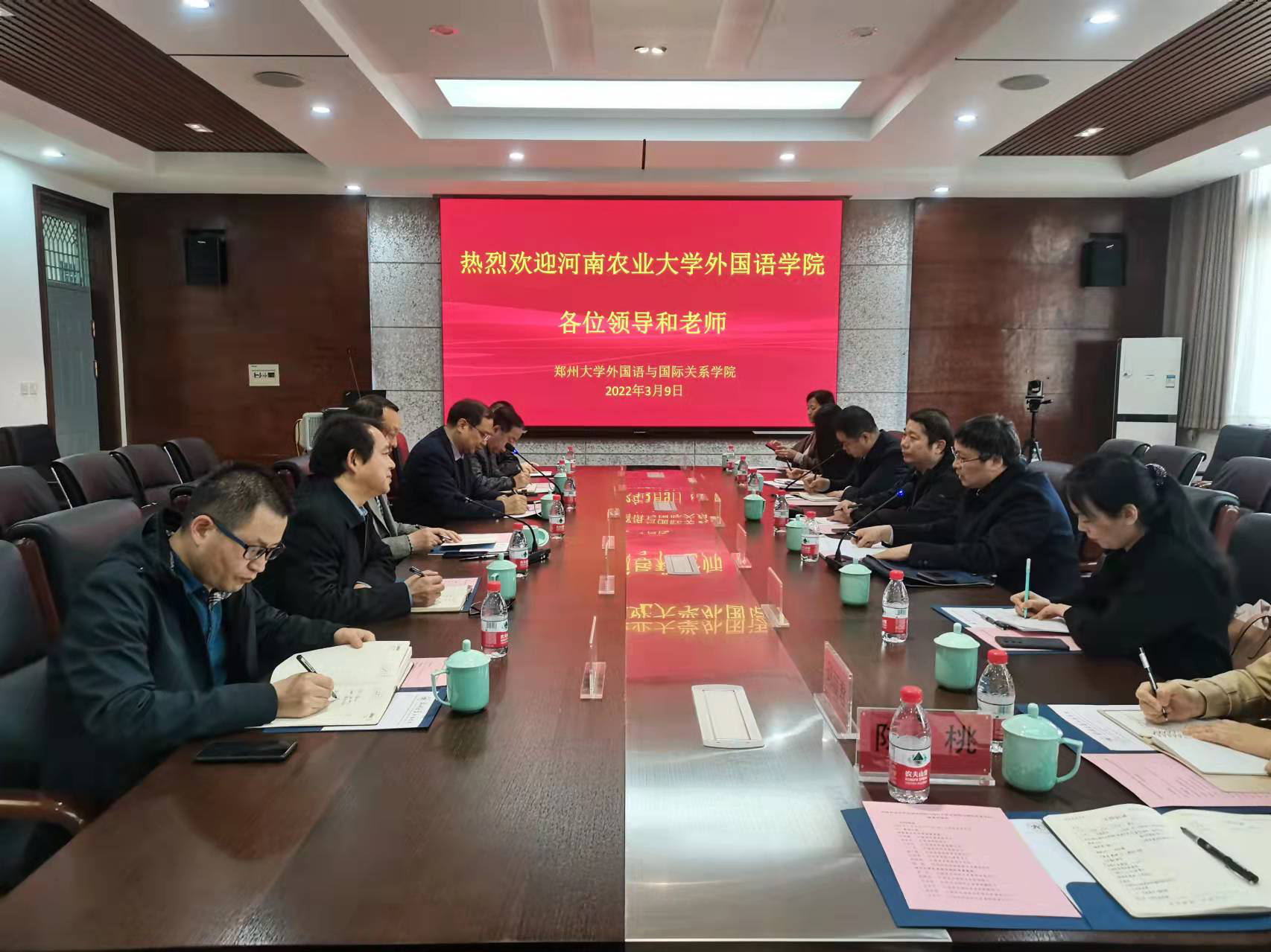 2022年3月9日下午,在党委书记邓振营、院长张俊杰带领下,领导班子成员和部分系部室主任、团委副书记一行8人,赴郑州大学杏吧视频 与国际关系学院进行调研。