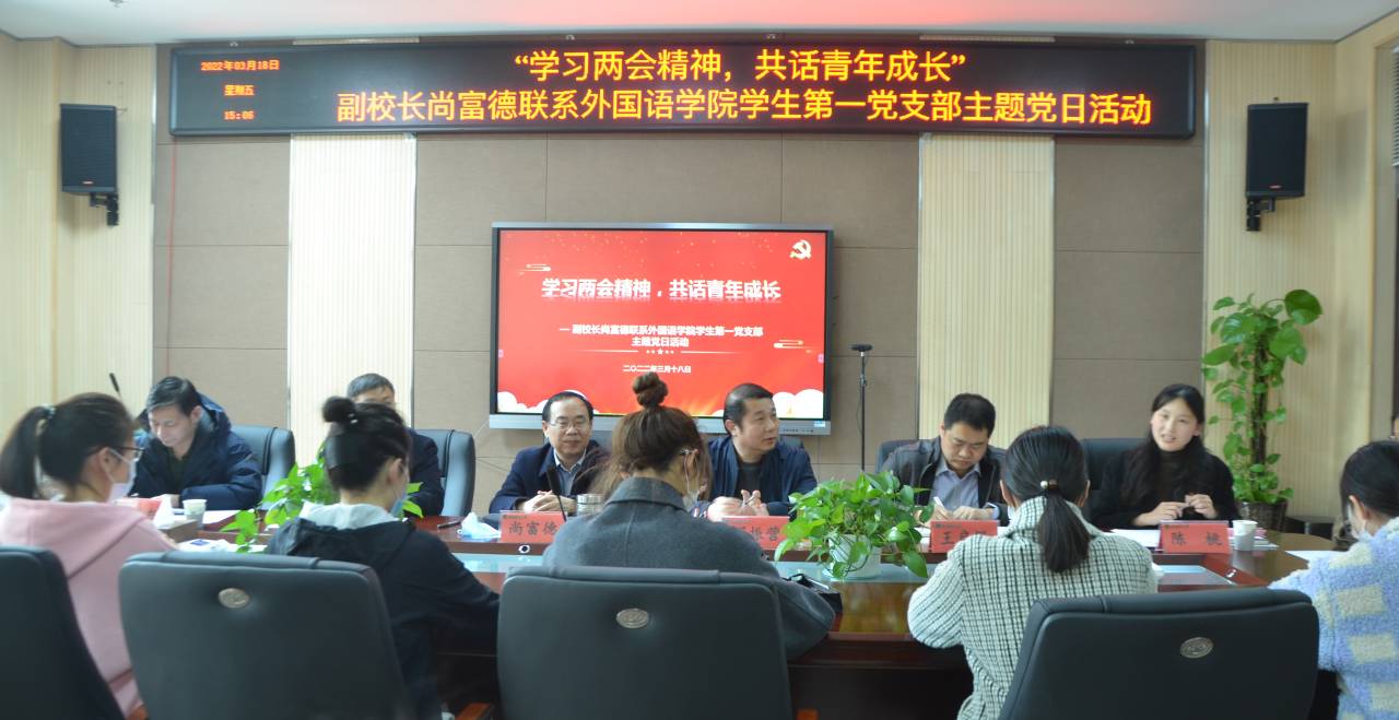 本网讯(审稿:王启佩 供稿:陈桃)3月18日,杏吧视频 学生第一党支部在龙子湖校区A320会议室开展以“学习两会精神,共话青年成长”为主题的党日活动。副校长尚富德作为党支部联系校领导出席此次活动。杏吧视频 班子成员列席会议。会议由学生第一党支部书记陈桃主持。