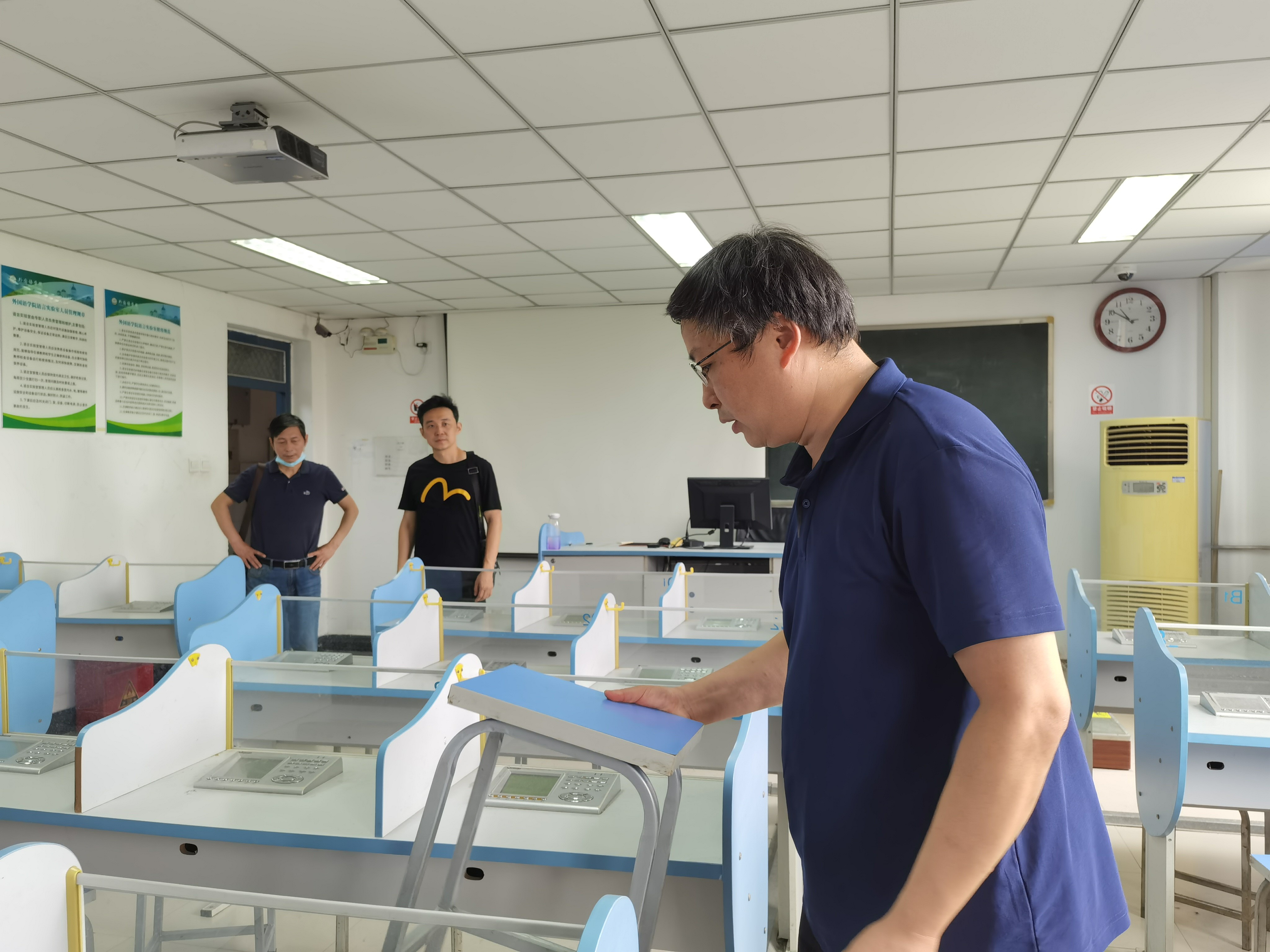 为配合学校整体教学工作安排,解决文化路校区桃李园语音实验室不足、设施陈旧等问题,学院领导积极谋划布局,制定实验室搬迁、升级改造计划,在保质增效的前提下合理利用学院现有资源,将龙子湖校区B座三间语音实验室设备搬迁至桃李园,同时升级改造桃李园原有部分实验室,完善基础设施体系,以满足外语实验教学需求。