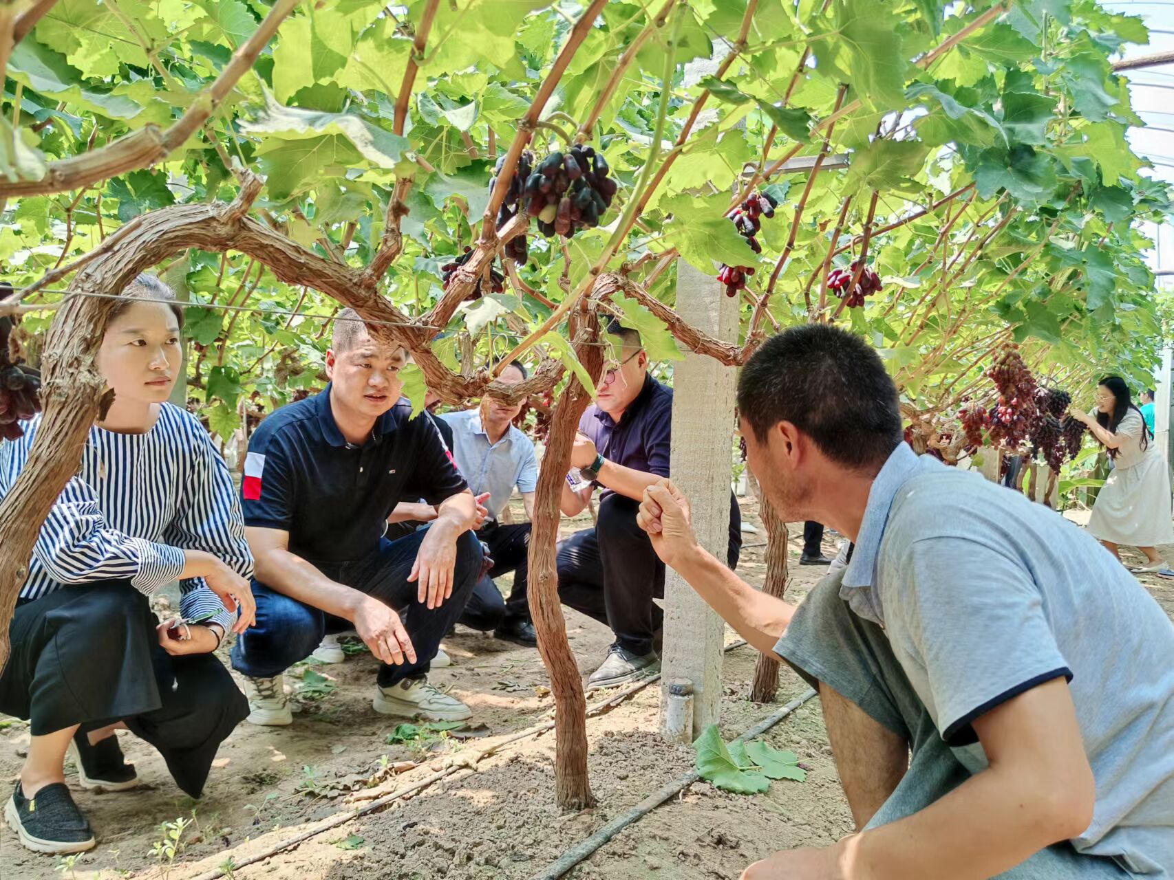 在魏玮带领下,青年乡村振兴团队成员先后到潘店胡村荷花种植基地、林下经济养殖场、贾鲁河潘店胡段、潘店胡小学、潘店胡村居住区、潘店胡村葡萄种植园等地进行现场调研、实地指导。在荷花种植基地,农业专家就荷花的药用价值以及当前长势状况进行现场分析。在林下经济养殖场,畜禽专家就如何做好循环经济串起绿色产业链进行了现场指导。在葡萄种植园,专家从土壤肥力、品种选择等方面对种植大户进行了现场指导。