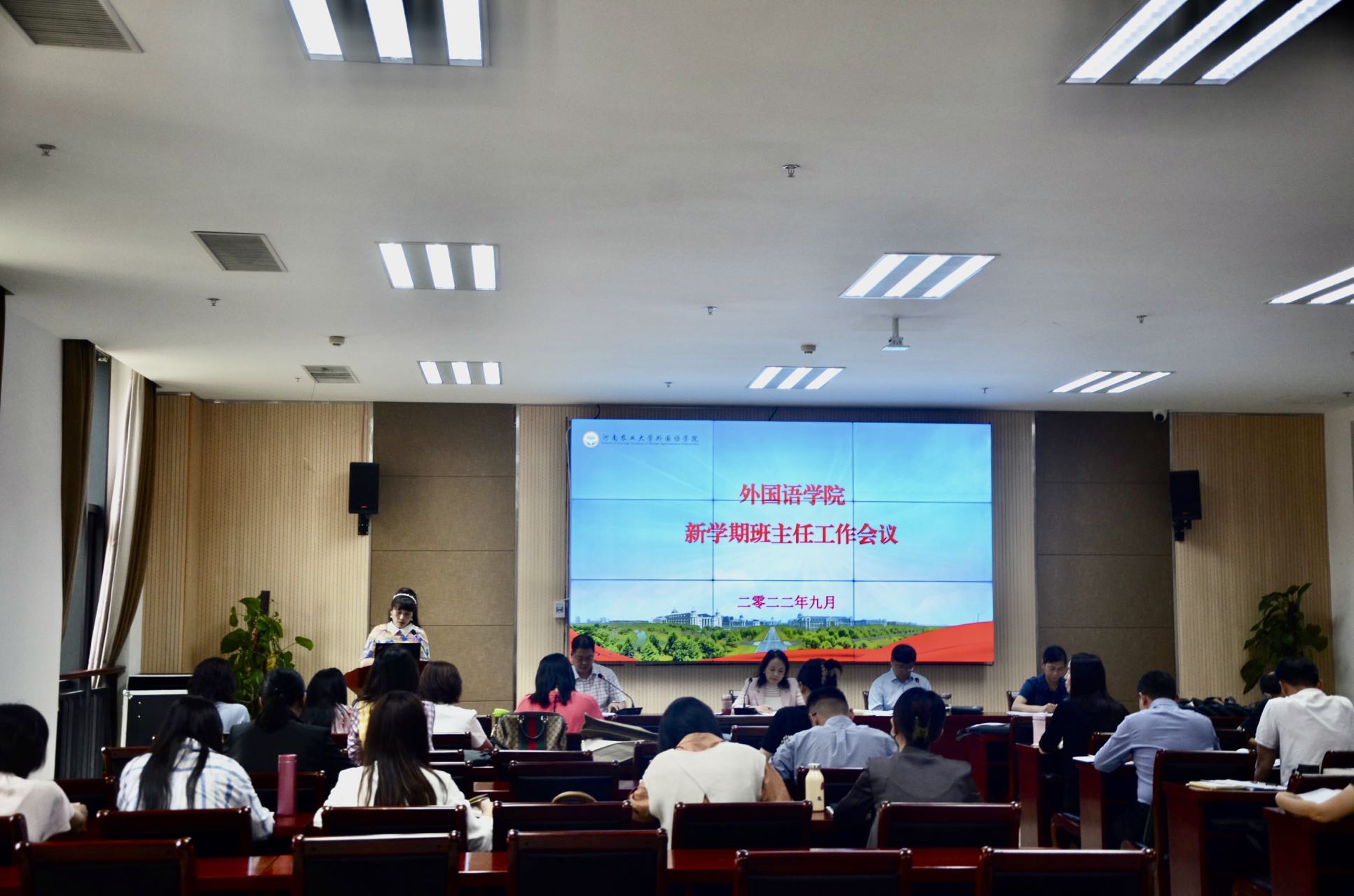 本网讯(审稿:王启佩 供稿:陈桃 张仪婷)为加强班主任队伍建设,提升班主任工作水平,夯实学生思想政治工作实效,9月20日下午,杏吧视频 在龙子湖校区召开2022年秋季学期班主任工作会议,院党委书记王燕萍、院长张俊杰与全体班子成员、年级辅导员以及全体班主任参加会议。会议由院党委副书记王启佩主持。