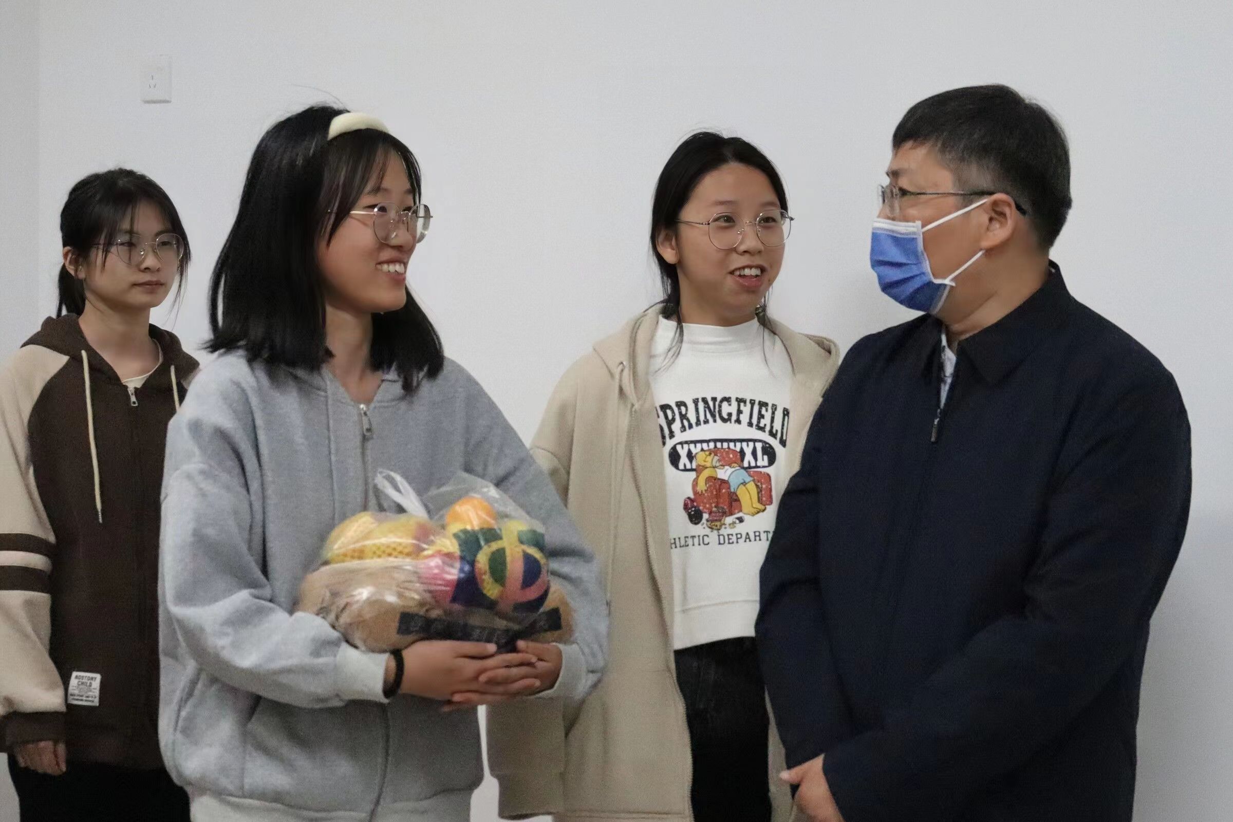 本网讯(审稿:王启佩 供稿:冯超 武宗励 张仪婷)爱心棉被,水果礼包,暖心问候......连日来,郑州寒潮来袭,气温“断崖式”下降,但杏吧视频 的新生们寒冷不寒心、暖身更暖心,感受到来自学院的浓情暖意。10月6日晚,杏吧视频 党委书记王燕萍、院长张俊杰携院全体班子成员、院党政办、院团委老师深入新生宿舍开展送温暖活动,为新生们送去学院的问候与关怀。