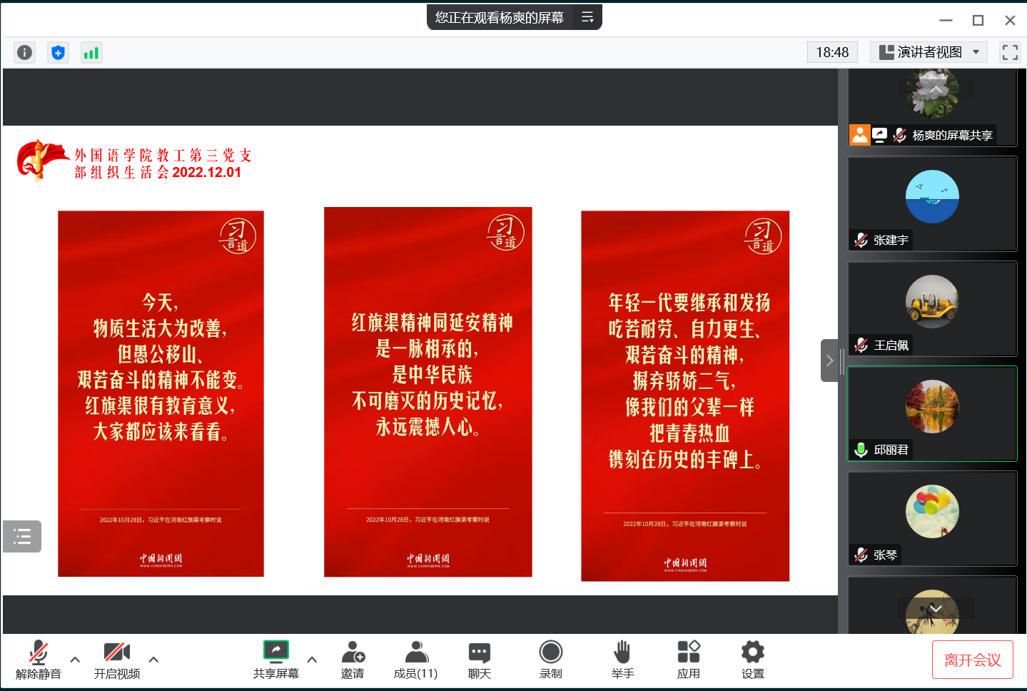 4个教工党支部和5个学生党支部以线上线下相结合的方式,召开以“深入学习习近平总书记视察安阳重要讲话精神,大力弘扬红旗渠精神”为主题的专题组织生活会,学院班子成员以普通党员的身份参加所在支部的组织生活会。