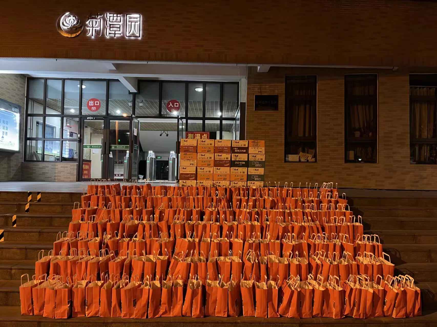 于龙子湖校区菊潭园楼下开展“语你相伴,心想事橙”考研送温暖活动,校党委书记魏蒙关到场慰问工作人员和考研学子,校党委学工部副部长张二龙,院党委书记王燕萍及学院毕业班辅导员冯超现场为毕业生分装、发放大礼包,为考研学子加油助威。