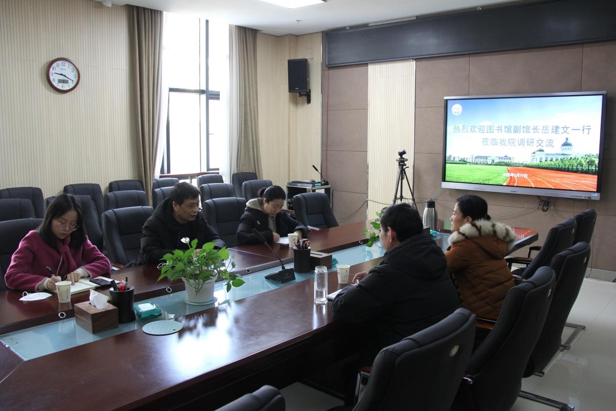 本网讯(审稿:张卫东 供稿:郝晓峰 吕品 )2月17日上午,图书馆副馆长岳建文一行三人来杏吧视频 调研,会议由副院长张卫东主持。