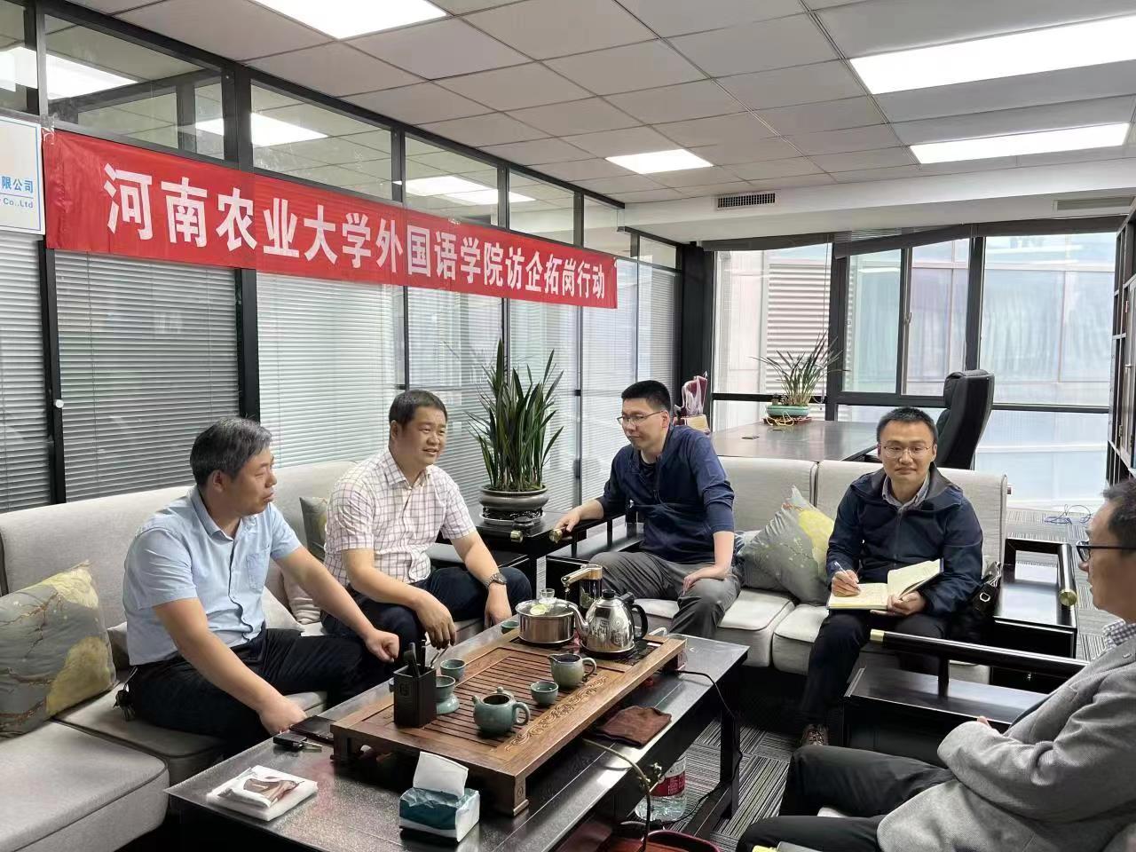 在河南诺唐教育咨询有限公司,总经理万续良、校长张新亮热情接待了王启佩一行。万续良介绍了企业的成长历程、经营状况、发展前景、人才需求等情况,并围绕校企深度合作、人才培养、拓宽就业岗位等方面深入沟通交流。