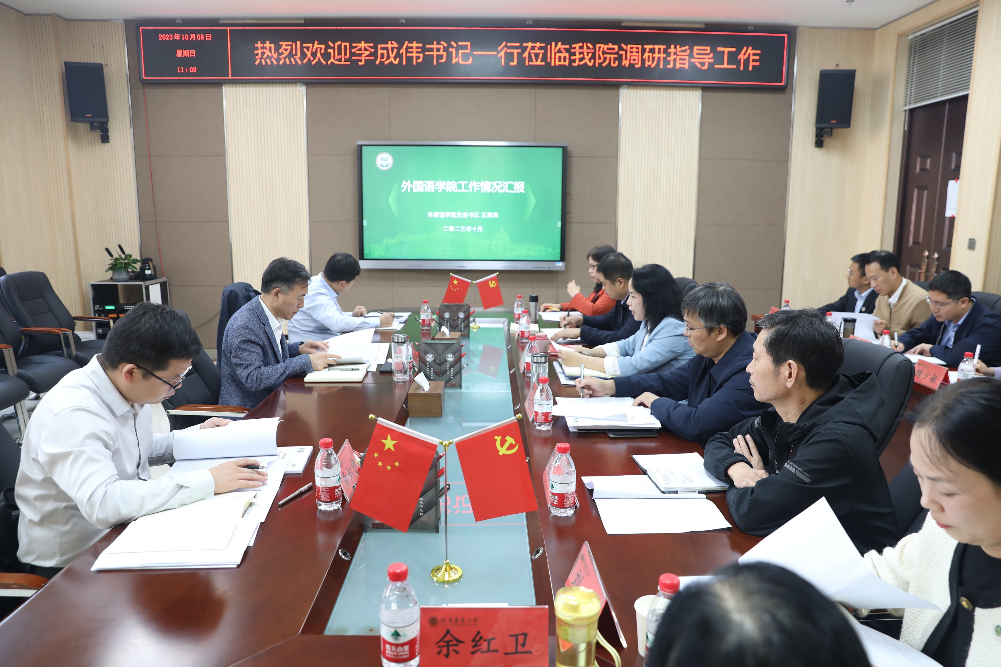 王燕萍汇报了学院基本概况、党建工作开展情况、存在的不足和今后努力方向。院长张俊杰汇报了学院教育教学、学科建设、人才培养、科学研究、社会服务、学生工作等方面的情况和未来发展规划。2023“出彩河南人”最美教师余红卫、校级样板党支部大学英语教学部党支部书记刘佳、日语系教授杨华等依次发言。
