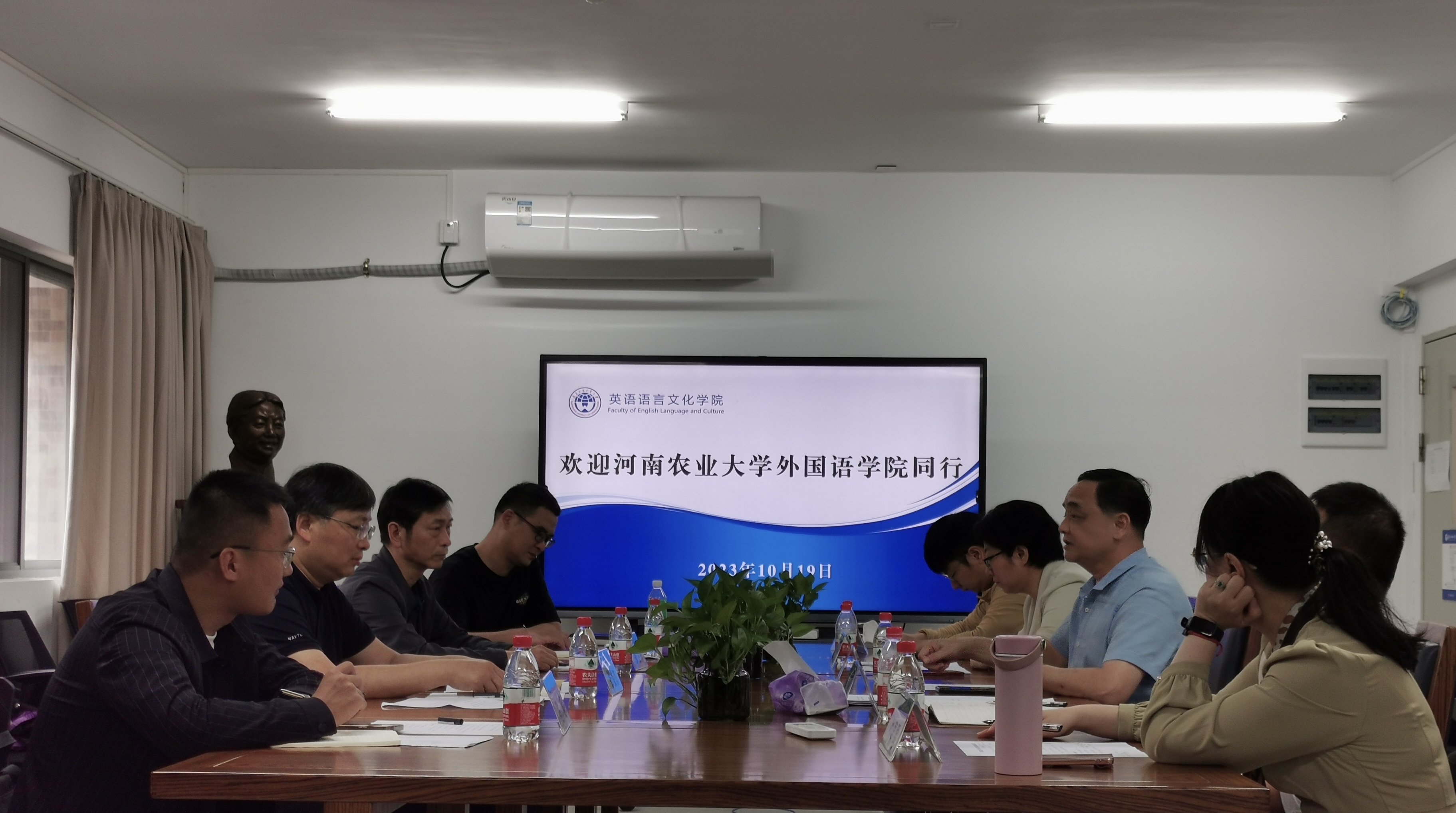 一行的到访表示热烈欢迎,他简单介绍了广东外语外贸大学英语语言文化学院的基本情况和党建工作开展情况。副院长吴庄介绍了广外英文学院的本科人才培养体系,并从课程设置、学生培养、实习实践等方面分享了经验。院党委副书记王迪介绍了学生特色品牌活动、志愿服务、就业指导、创新创业等方面的典型做法和取得成效。