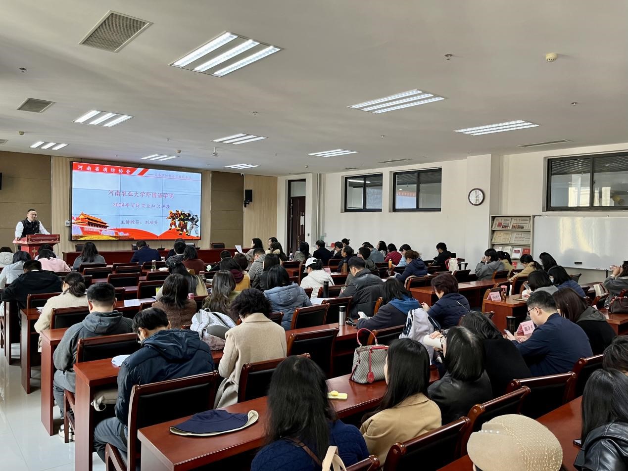 安全生产和消防安全工作,预防火灾事故发生,3月12日下午,学院邀请河南省消防协会义务消防科普宣传服务队刘顺齐教员作消防安全知识专题讲座,并进行了消防应急演练。会议由副院长张卫东主持,全体教职工参加。