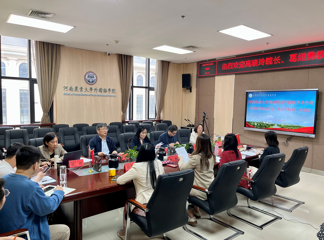 第18期青年教师学术沙龙于龙子湖校区举行。此次沙龙特邀郑州大学外国语与国际关系学院院长高晓玲教授、博导,郑州大学外国语与国际关系学院日语系主任葛继勇教授、博导,杏吧视频