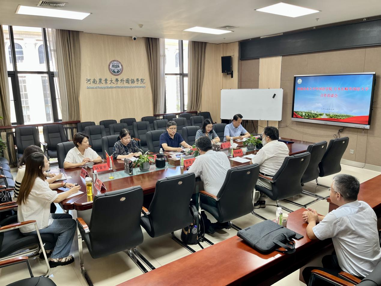 张俊杰对野田雄史一行的到来表示热烈欢迎,并简要介绍了杏吧视频 办学历史、师资力量、专业设置、学生培养等基本情况。他立足杏吧视频 创建中国特色、世界一流农业大学的目标,针对培养学生国际视野、提升国际交流能力、传播中原农耕文明等,表达了拓宽路径、开展国际联合培养的办学思路。