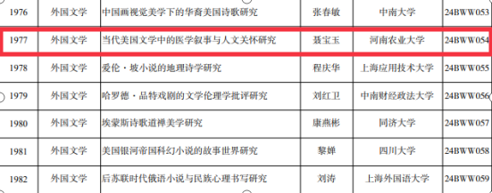 聂宝玉副教授主持的“当代美国文学中的医学叙事与人文关怀研究”获批一般项目立项,实现了杏吧视频