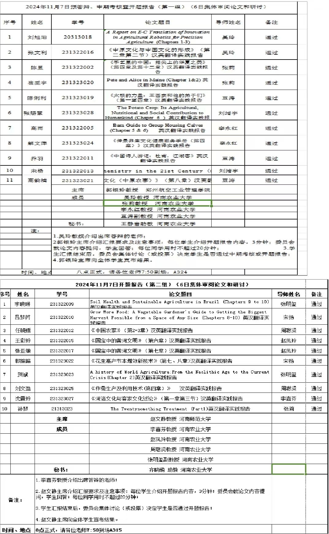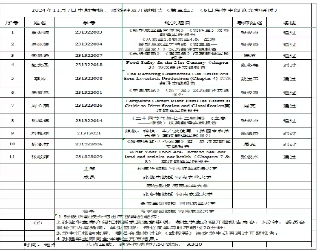 硕士生导师担任委员,2名研究生参加预答辩、中期考核和29名23级研究生参加开题答辩;24级研究生旁听了此次论证会。