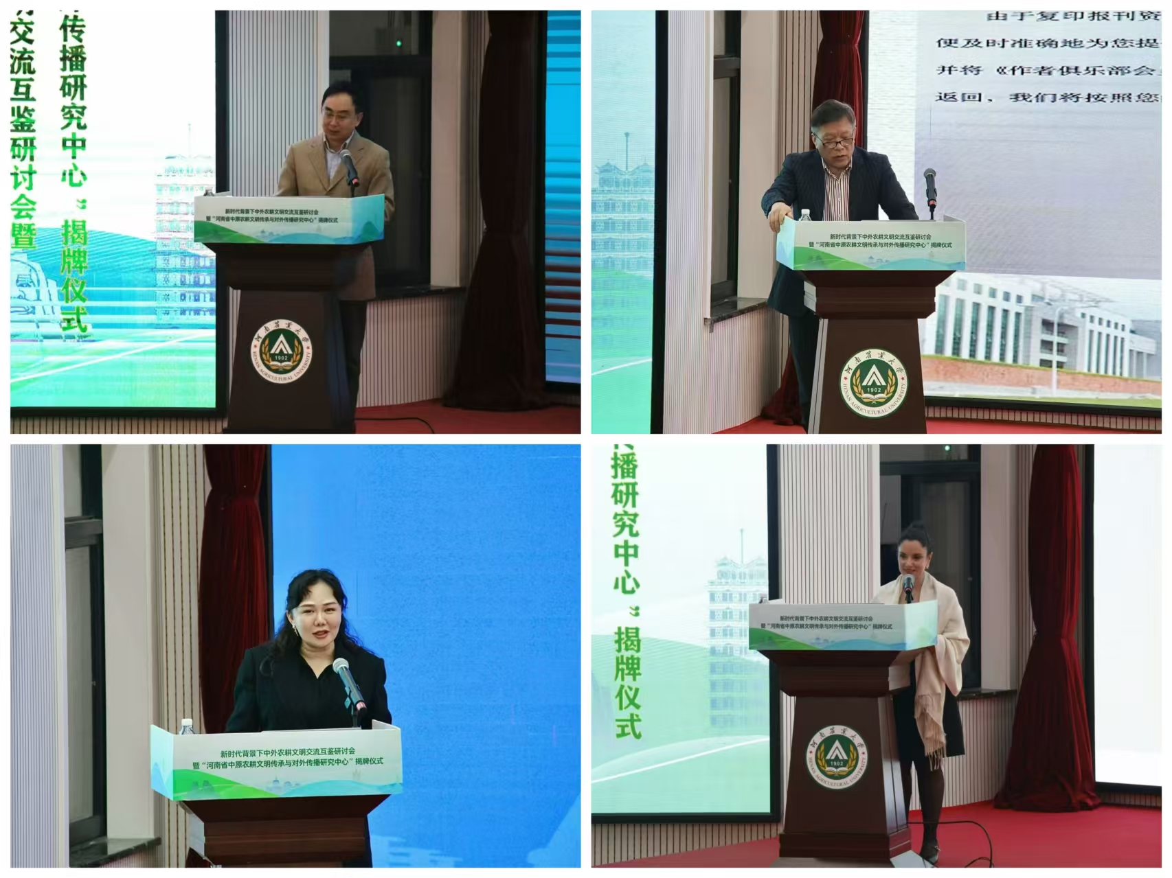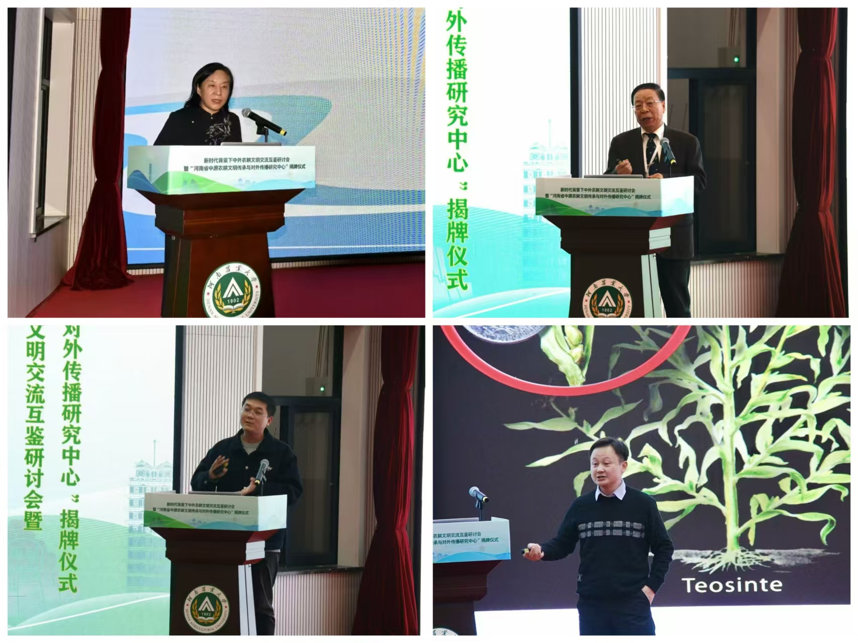 党委副书记、工会主席何松林,河南省翻译协会会长郭俊峰,中共河南省委外事办原副主任、一级巡视员杨玮斌共同为河南省中原农耕文明传承与对外传播研究中心揭牌。