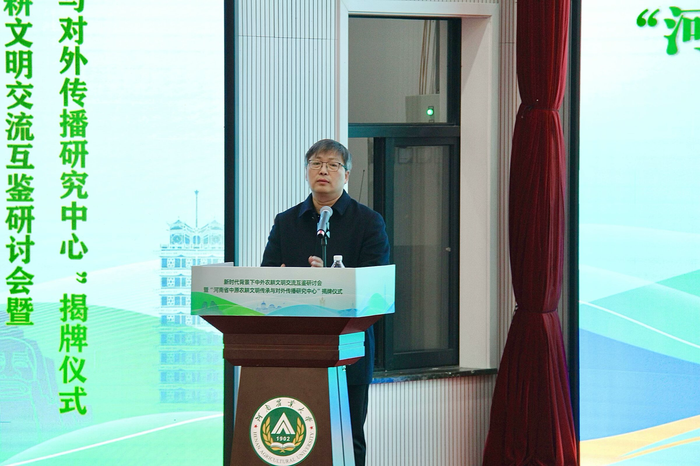 、农学院承办的新时代背景下中外农耕文明交流互鉴研讨会暨“河南省中原农耕文明传承与对外传播研究中心”揭牌仪式在龙子湖校区顺利召开,校党委副书记、工会主席何松林出席开幕式。
