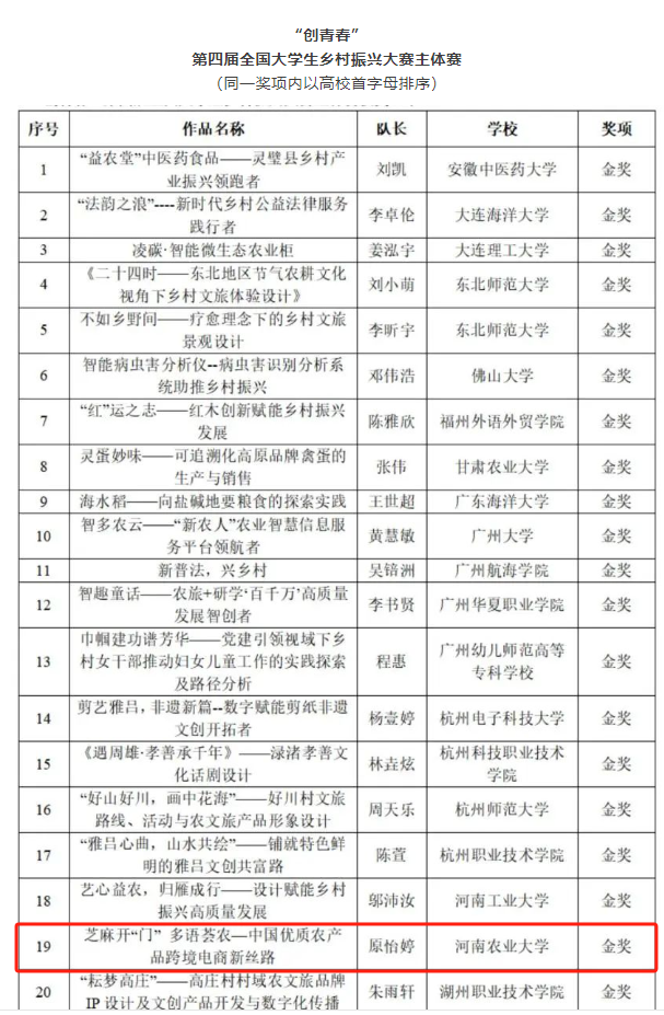 在“创青春”第四届全国大学生乡村振兴大赛中喜获佳绩