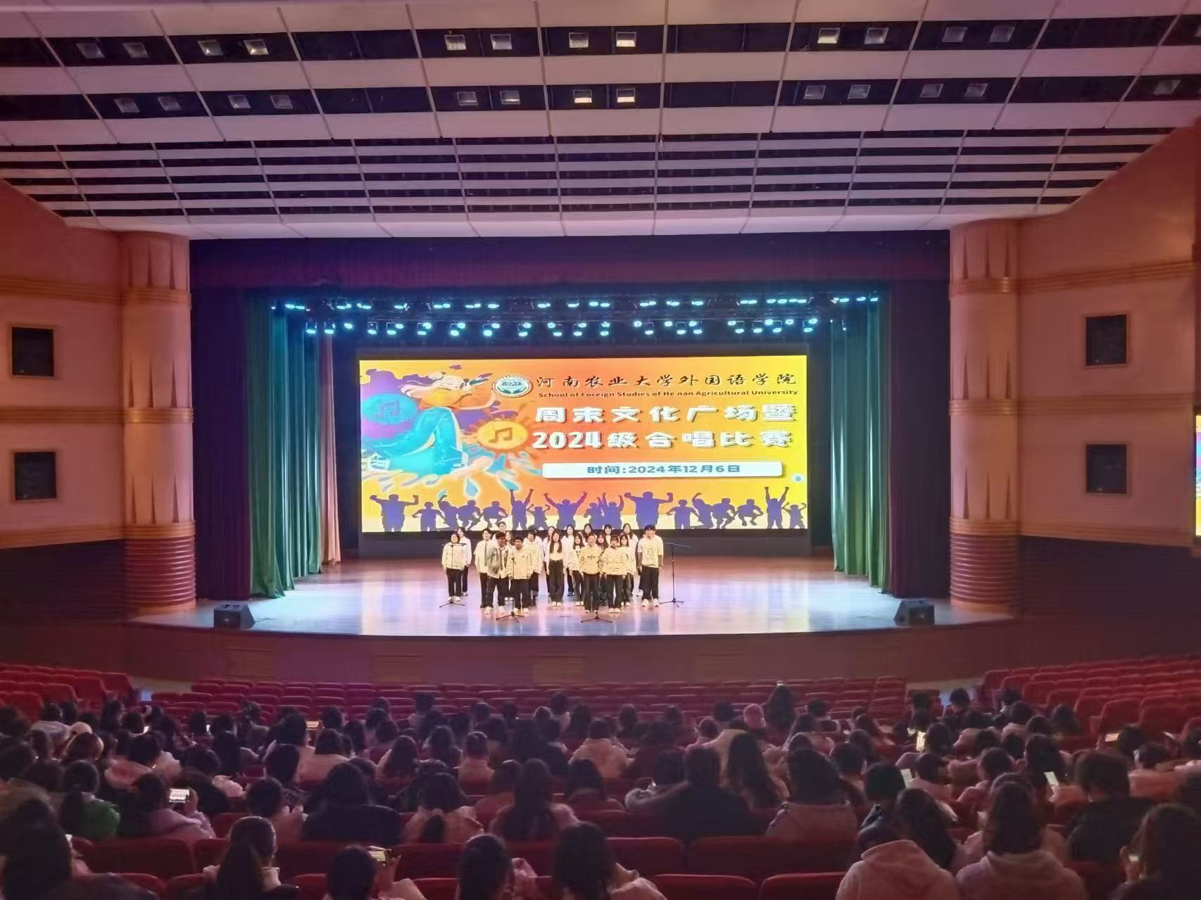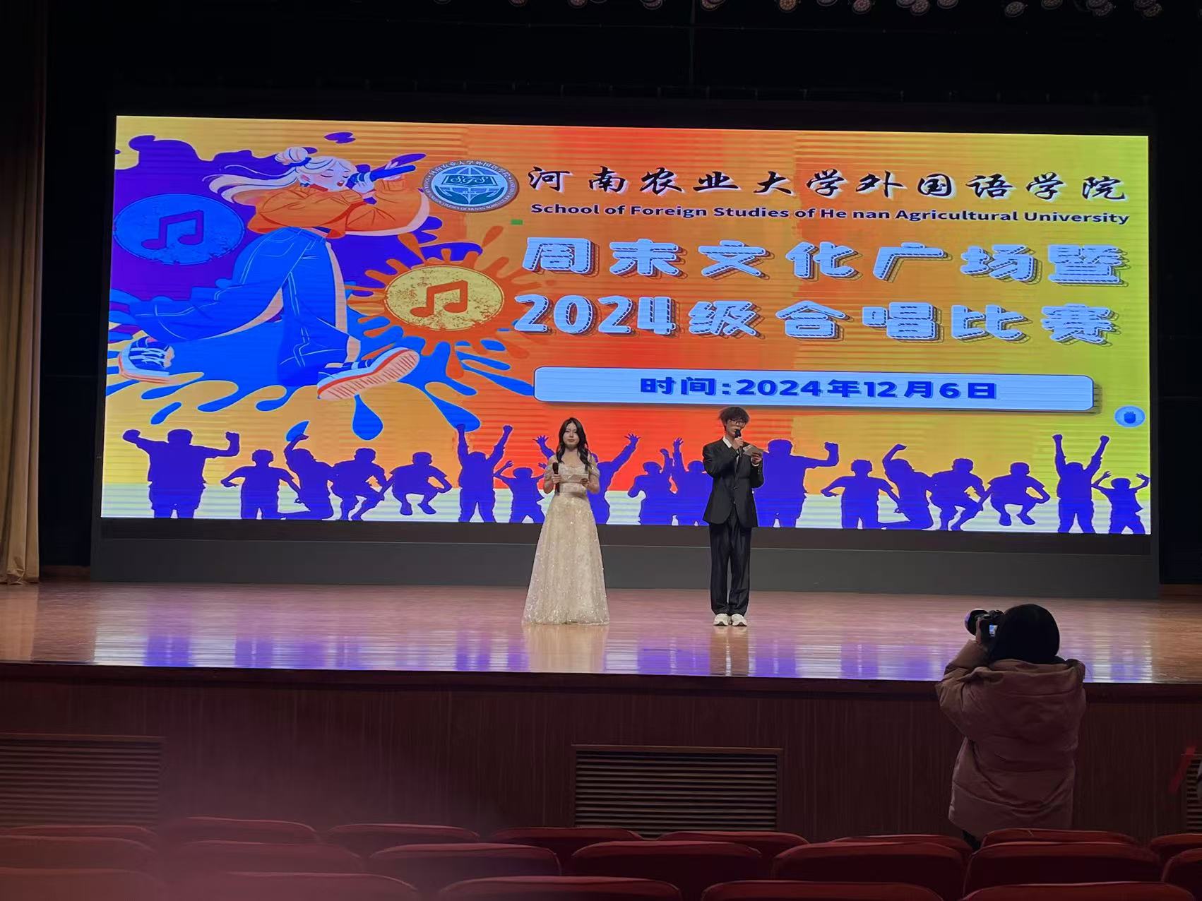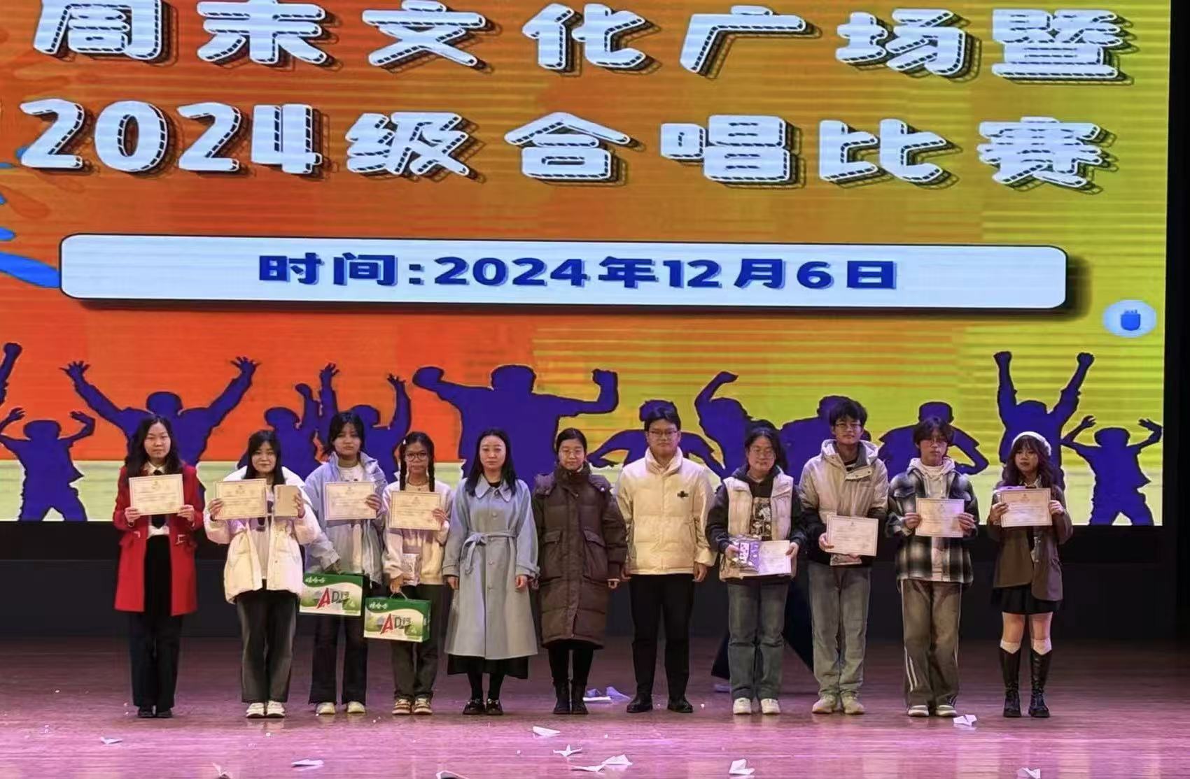 于文化路校区千人大礼堂举办周末文化广场暨2024级合唱比赛。院党委副书记杨鑫、院团委书记冯超、辅导员武宗励、侯彦冰担任评委,24级全体学生参与了此次活动。