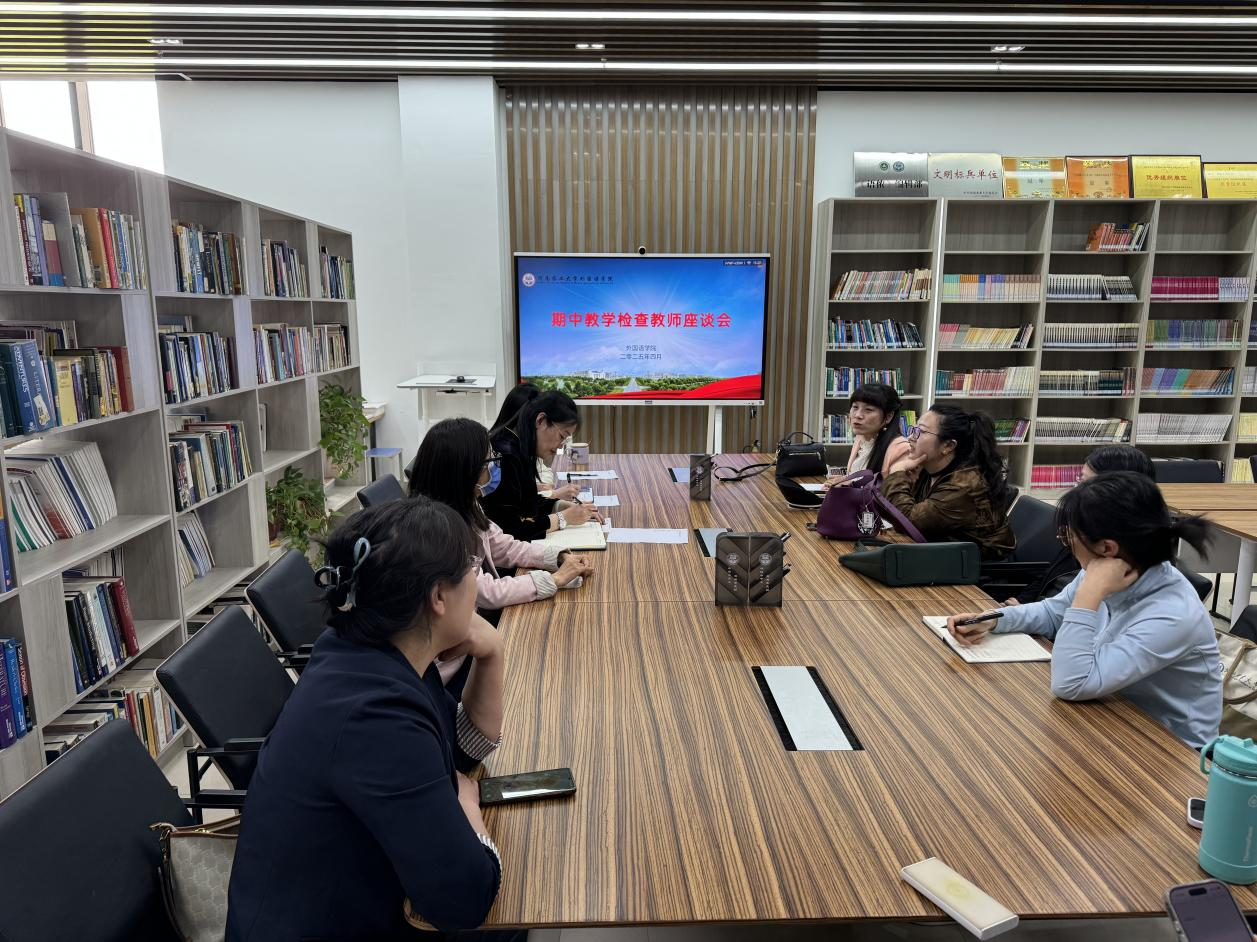 于4月15日、16日分别在繁塔楼A315与A324会议室,组织召开了期中教学检查教师座谈会及学生座谈会。副院长吴玲、各系部主任、教师代表、学生代表分别参加了相关会议,会议由副院长吴玲教授主持。