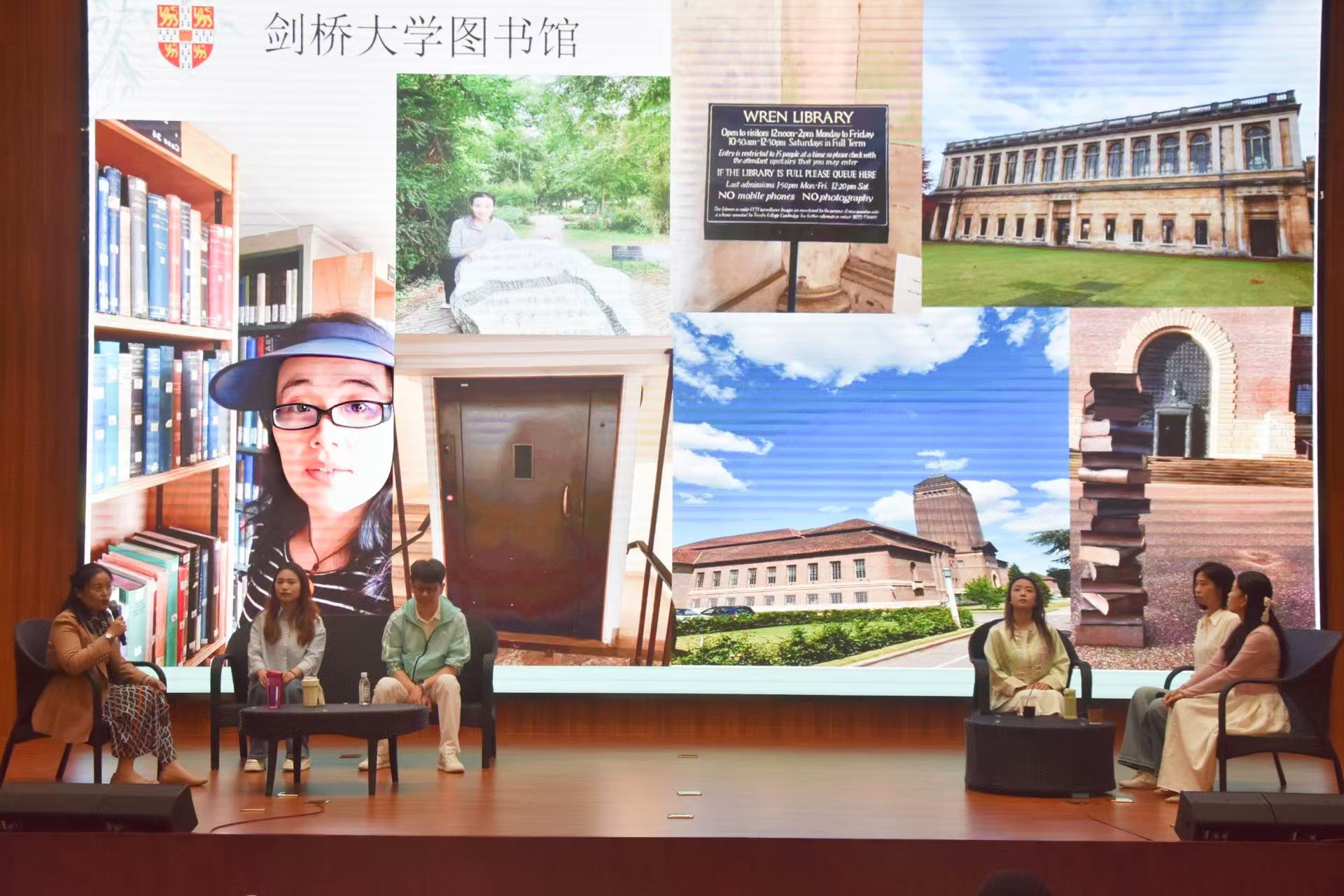 教师代表吴玲、朱婧、杨爽、徐思园、宋晓川、陈慧敏带来读书分享会《我和我的图书馆》。六位教师结合自己成长过程中的人生阅读体验和感悟,分享了剑桥大学、清华大学、日本二松学舍大学、北京航空航天大学、澳门大学、陕西师范大学多所高校的图书馆学习经历与美好时光,阅读成为他们不同人生阶段中获取知识、克服困难、追寻人生真谛的恒久力量。