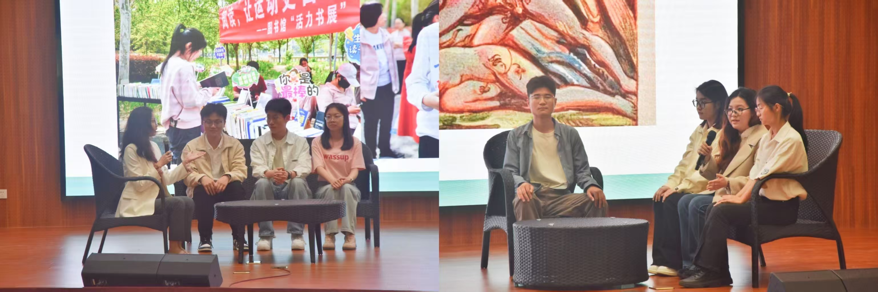春华秋实读书会成员带来读书分享,七位同学结合自身读书体验,从不同角度分享个人的阅读感悟与心得体会,向大家分享了《平凡的世界》《裁缝师的礼物》《魂断威尼斯》等多本经典书籍。台上台下,以书为媒,以文会友,开启了一场别开生面的读书分享会,体现了思想的碰撞,引发了在场师生的精神共鸣。