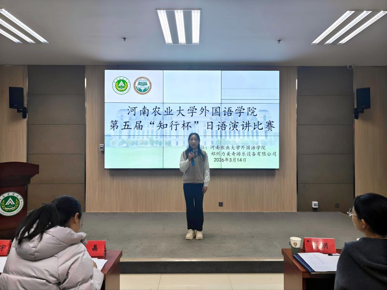 第五届“知行杯”日语演讲比赛在繁塔楼A324拉开帷幕。院党委副书记张玥出席,院团委书记、日语系教师代表、郑州力美奇企业嘉宾担任评委。