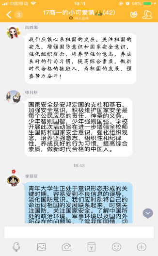 开展了网上“国家安全知识试卷”答题活动,组织学生集体学习国家安全知识,系统了解总体国家安全观的主要内容。随后,学院组织各支部团员认真观看“千万学生同上一堂国家安全教育课”,使其集中学习国家安全观理论知识。并开展主题团日活动,进一步拓展学习成果。与此同时,学校利用官方微博、官方微信公众号等宣传平台,发布推送国家安全知识和相关法律法规内容,营造了浓厚的安全教育氛围。同学们纷纷表示,作为新时代的团员青年,将以身作则,自觉遵守相关法律规定,不做有危害祖国安全、荣誉和利益的行为,竭尽全力维护国家安全。