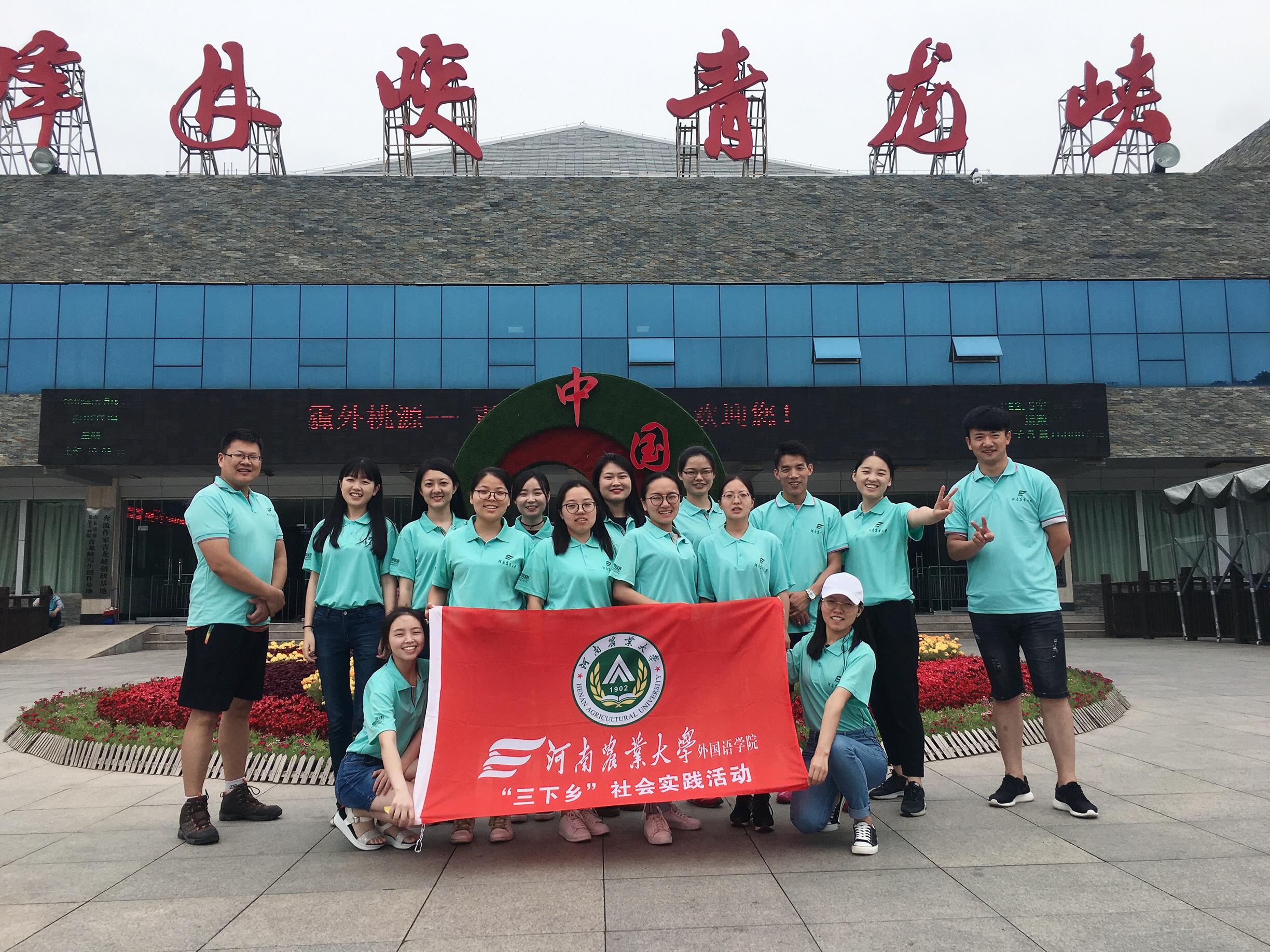 为搭建中外友好交流桥梁,引起景区对公示语的重视,7月5号,杏吧视频 17级英语笔译班“青龙峡景区语言服务团队”15名队员齐赴青龙峡进行了为期两天的社会实践活动。