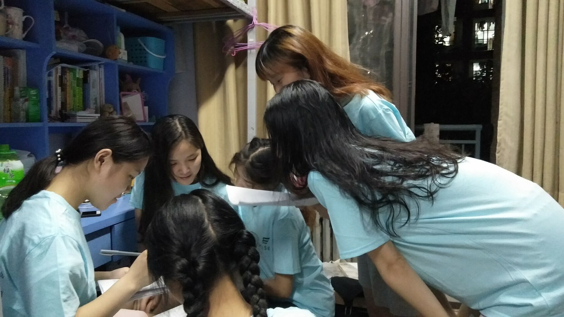 7月1日晚,团队成员在宿舍集体讨论第二天行程。查询好往返路线,讨论需要带的东西,整理了提前打印好的历史背景资料。