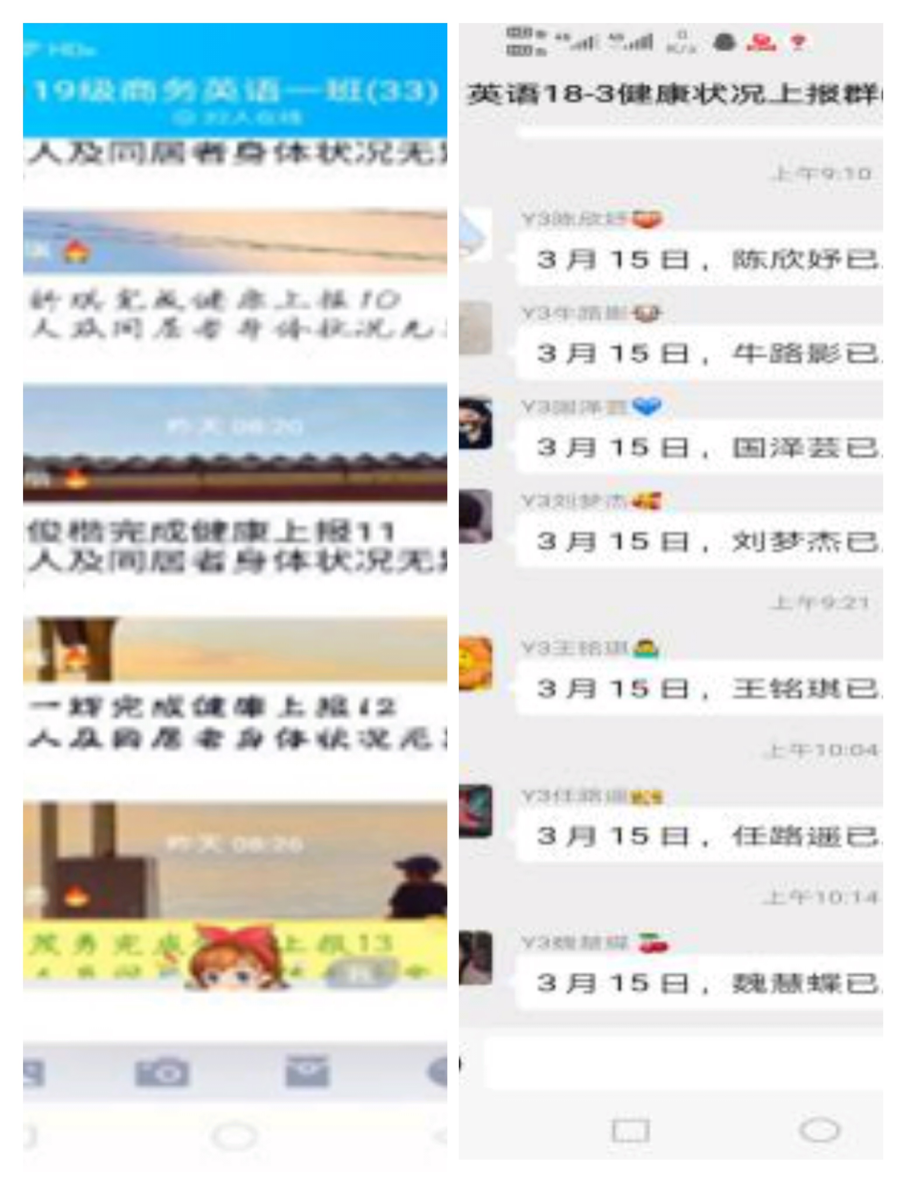 根据校防控办指示,杏吧视频 本专科生构建了由学院党委副书记周晓负责,年级辅导员、各班班主任、各班班委具体监督负责的“学院—年级—班级—班小组”四级网格化管理体系。学院严格按照校党委学工部的安排每天下午16:00前上报各班的学生的身体状况的报告,时刻更新学生的身体健康信息,加强疫情摸排、掌控学生在家出行轨迹,严格做到不漏报、不瞒报。