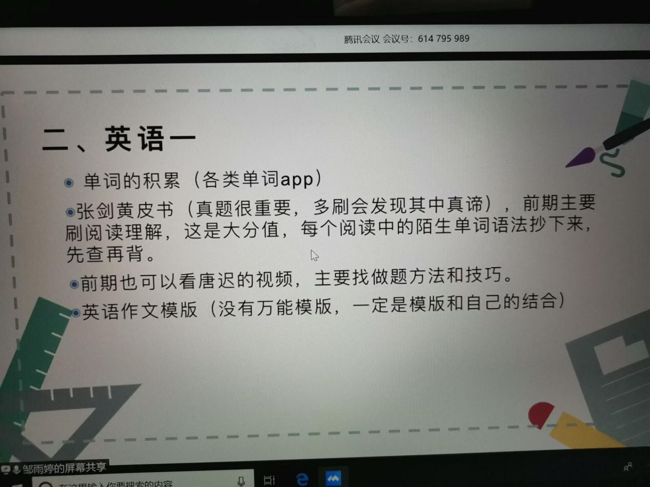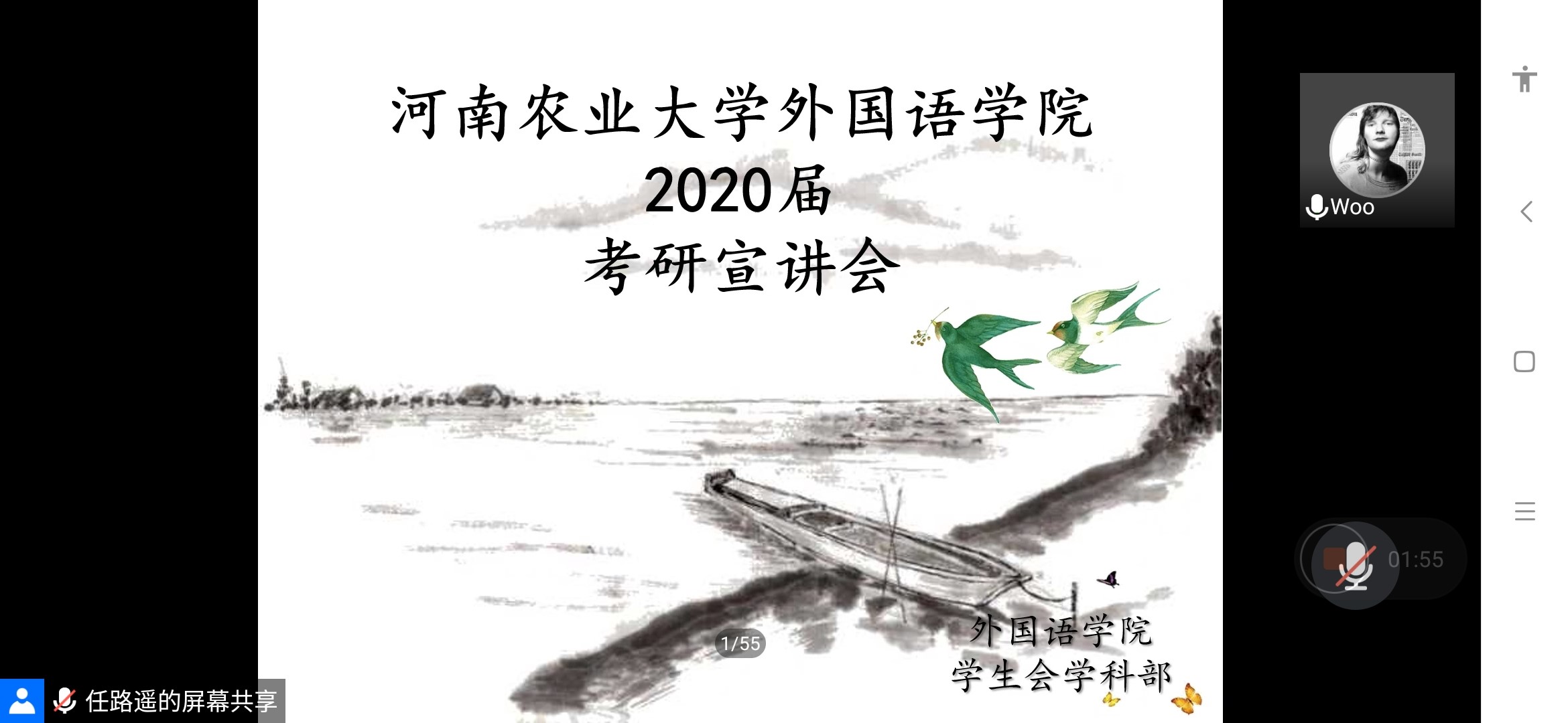 本网讯(审稿:李沛 供稿:梅如意)为进一步激发学生考研热情,明确考研目标,掌握考研技巧,6月19日晚七点,杏吧视频 利用腾讯会议举办了线上考研宣讲会。本次宣讲会邀请了学院七位2020年考研优秀学生代表,各年级学生积极参与了本次宣讲会。