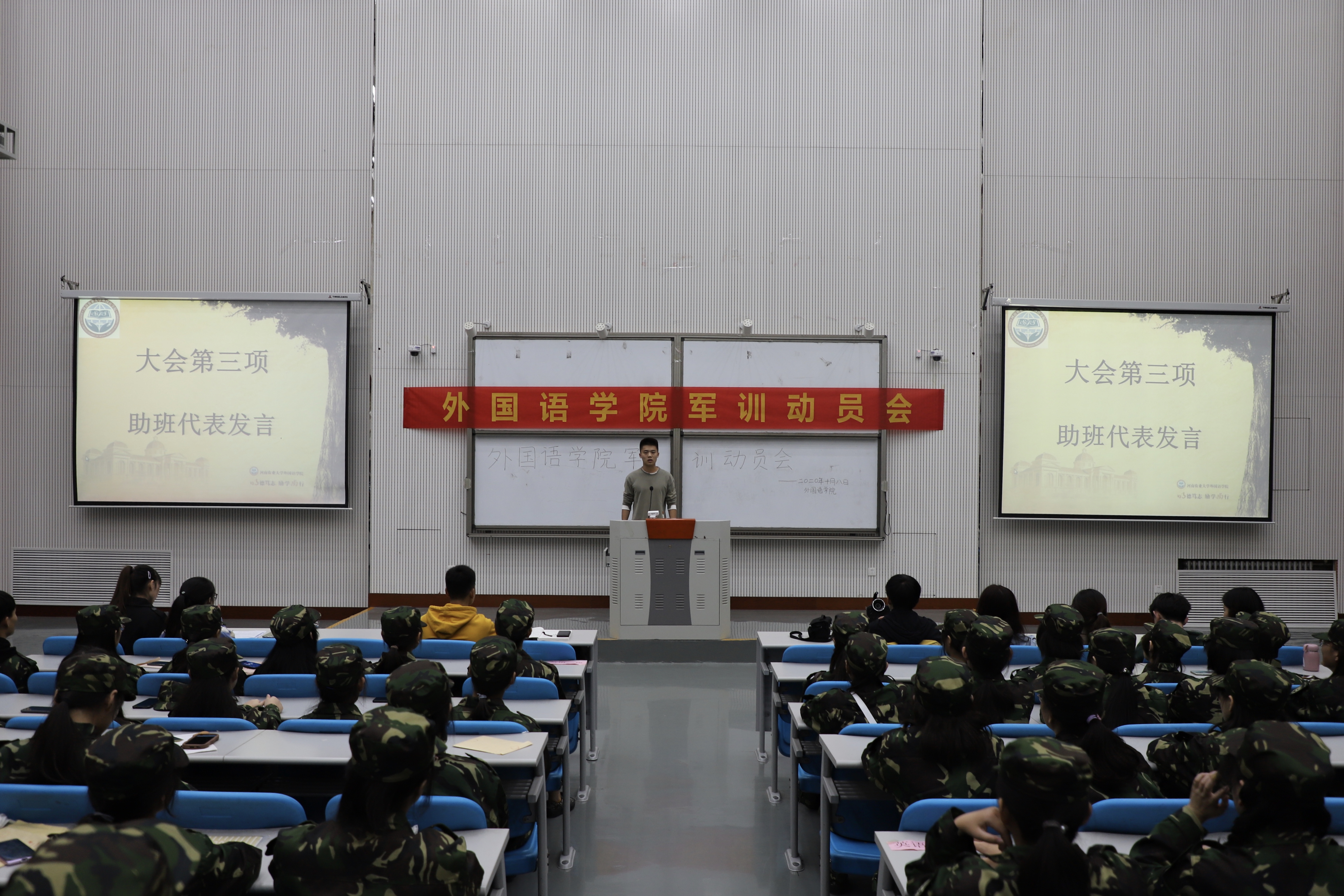 接下来,迎新志愿者代表张辰龙发言。他强调每一位新生都要珍惜身穿戎装的机会,在军训这个大舞台上施展才华,展现出外院人的风采,书写绚烂无悔的青春篇章。