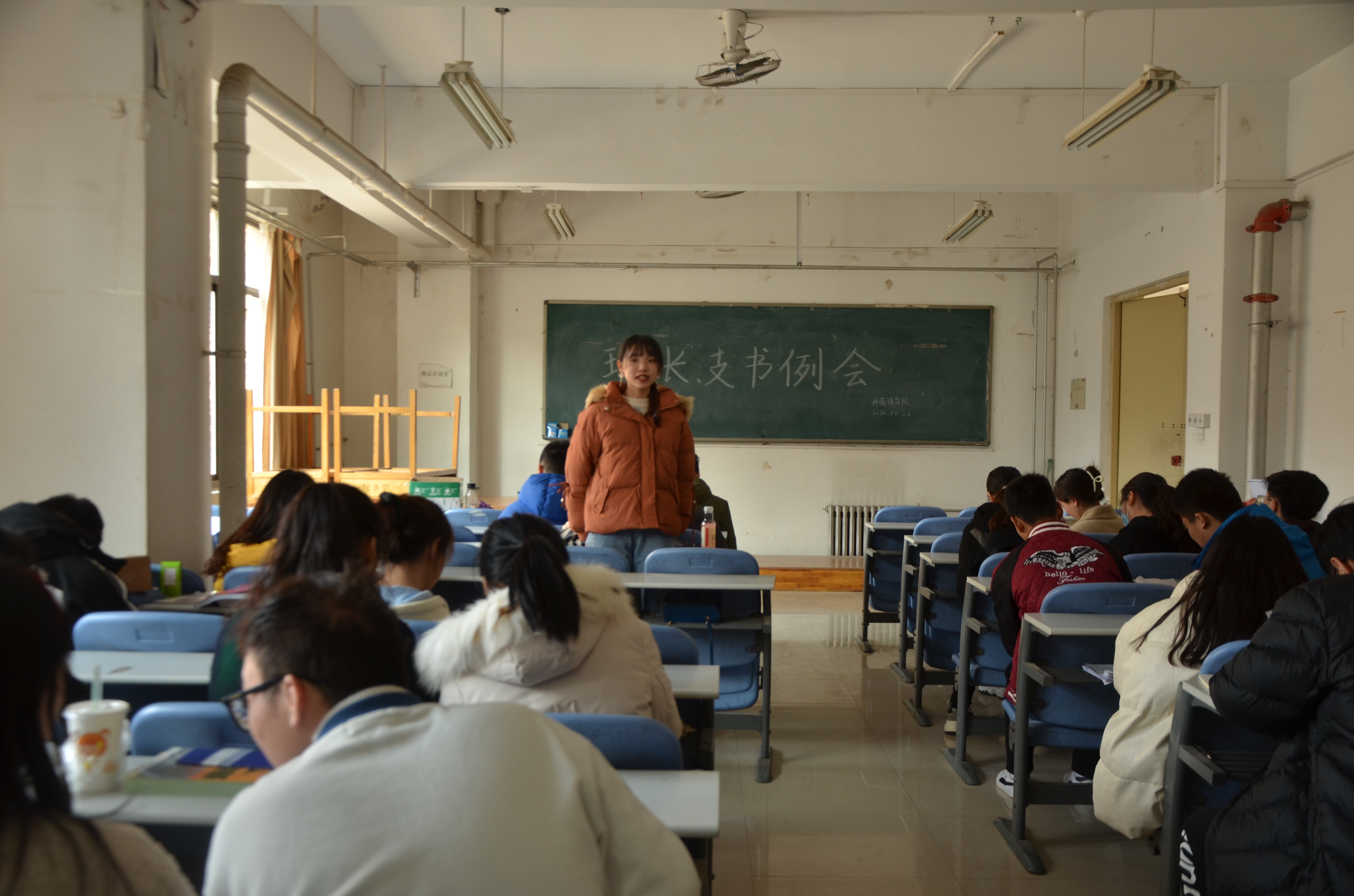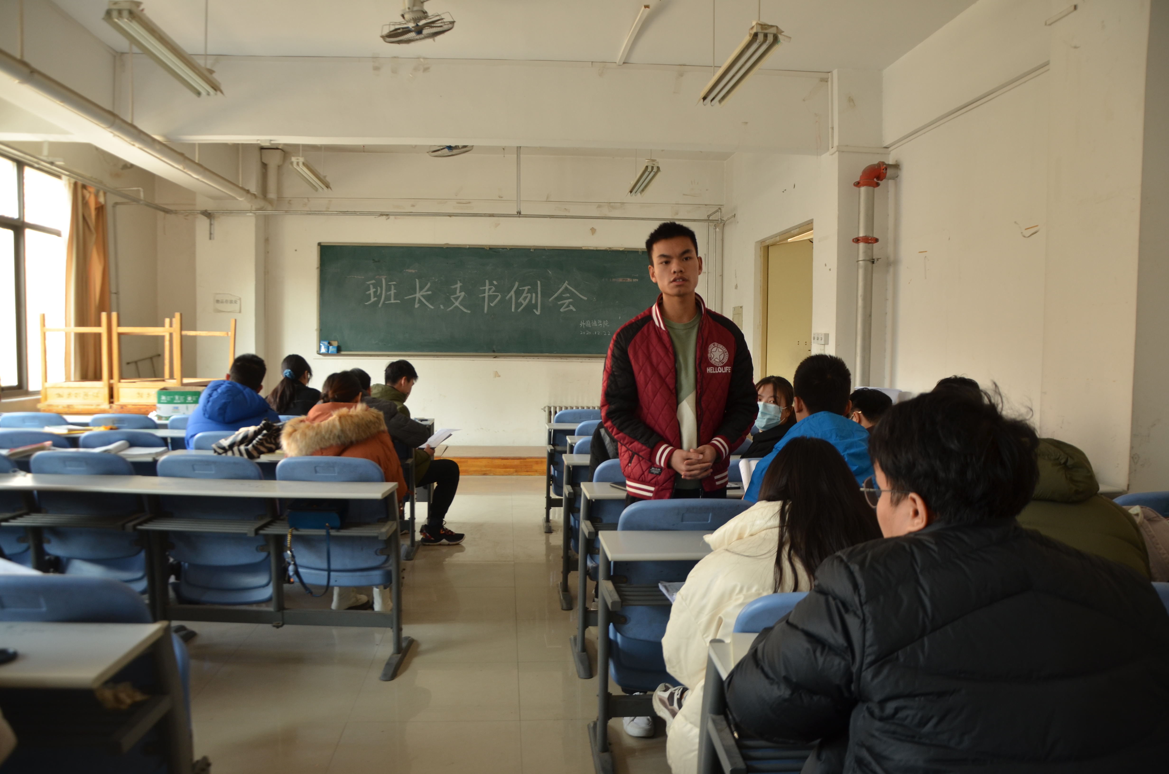于龙子湖校区海棠园202自习室召开了本学期第十三次班长支书例会。主要学生干部及各班班长支书参加此次例会。