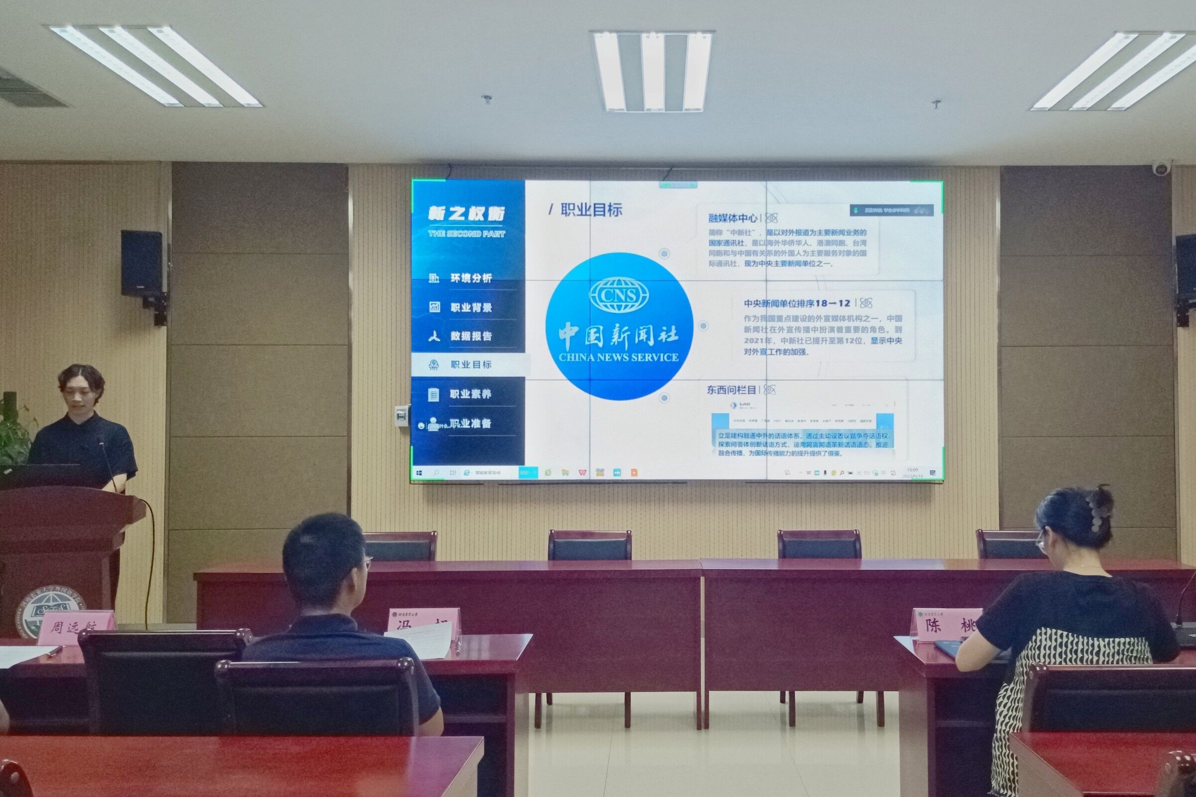本网讯(审稿:陈桃 供稿:张仪婷)为积极引导大学生勇敢面对职场挑战,树立正确的成才观和就业观,传播和普及职业规划理念,9月16日晚,杏吧视频 职业生涯规划大赛如期召开。此次大赛通过线下线上相结合的方式进行,团委副书记陈桃、冯超出席比赛并担任评委。
