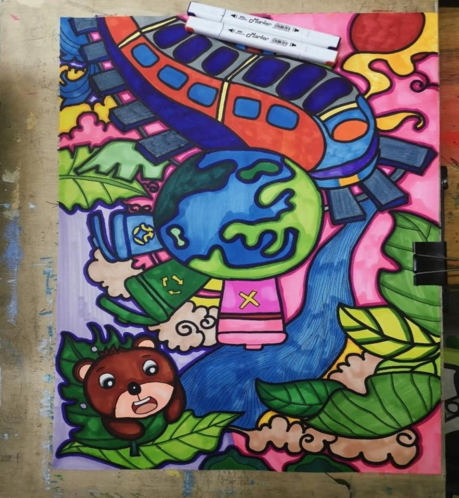 在活动期间,同学们便投入到紧张而兴奋的创作中。有的同学聚精会神地在纸上勾勒出精美的图案,用细腻的笔触描绘出蓝天、碧水、青山等自然元素,展现出对生态文明的美好向往;有的同学则专注地书写着文字内容,从生态文明的定义、重要性到如何在日常生活中践行环保理念,他们用简洁明了、生动有趣的话语传递着自己的理解;还有的同学将绘画与文字巧妙结合,创作出一幅幅内容丰富、形式多样的手抄报。使更多的同学们感受到了保护生态的磅礴力量。