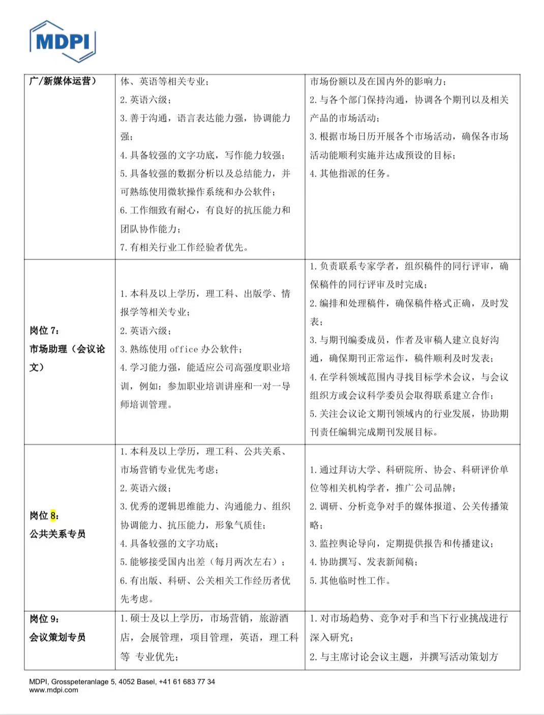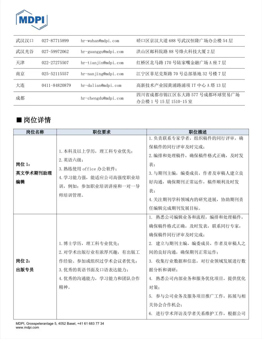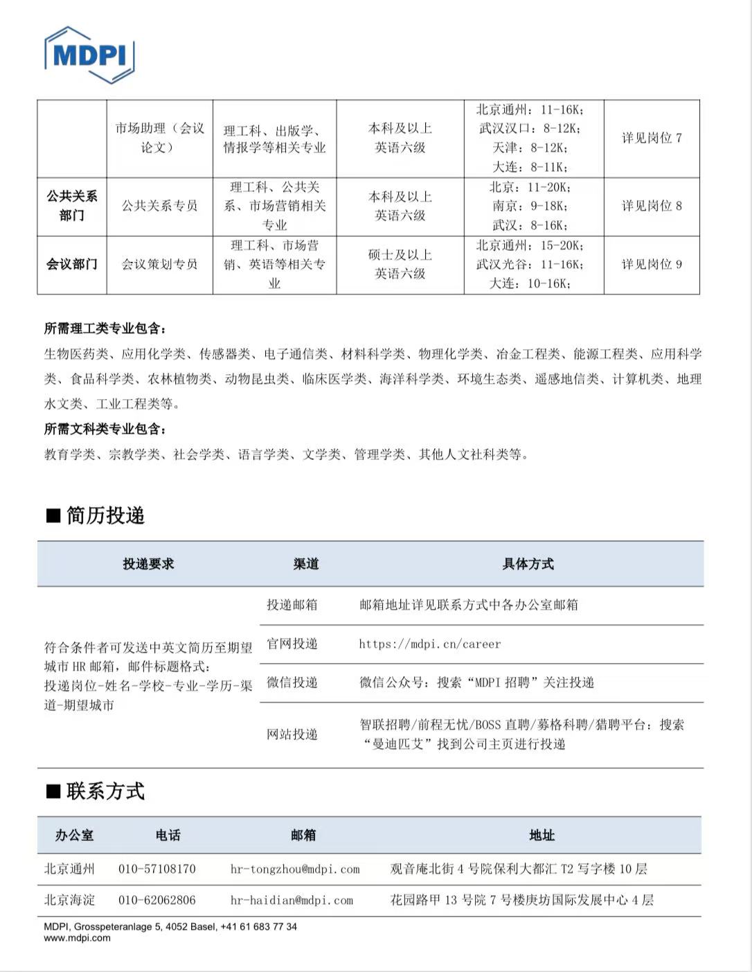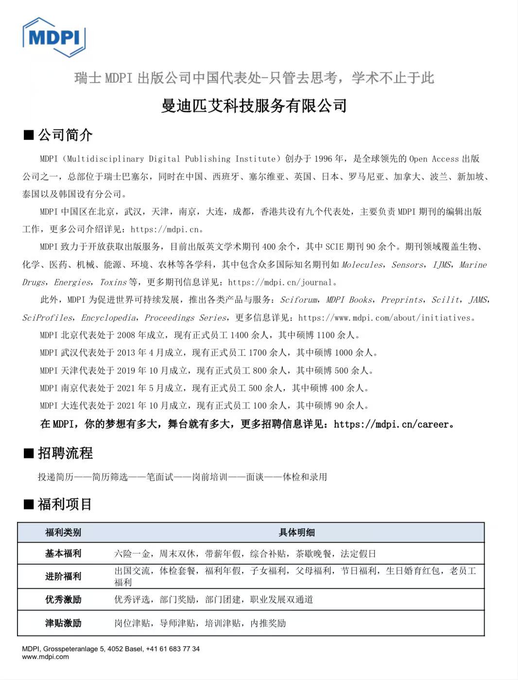 MDPI(中国)2025春季校园招聘简章