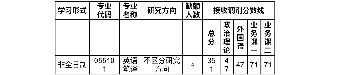 第一志愿报考专业应满足055101英语笔译、055102英语口译、055100翻译、050201英语语言文学和050211外国语言学及应用语言学方向的英语语种的要求。