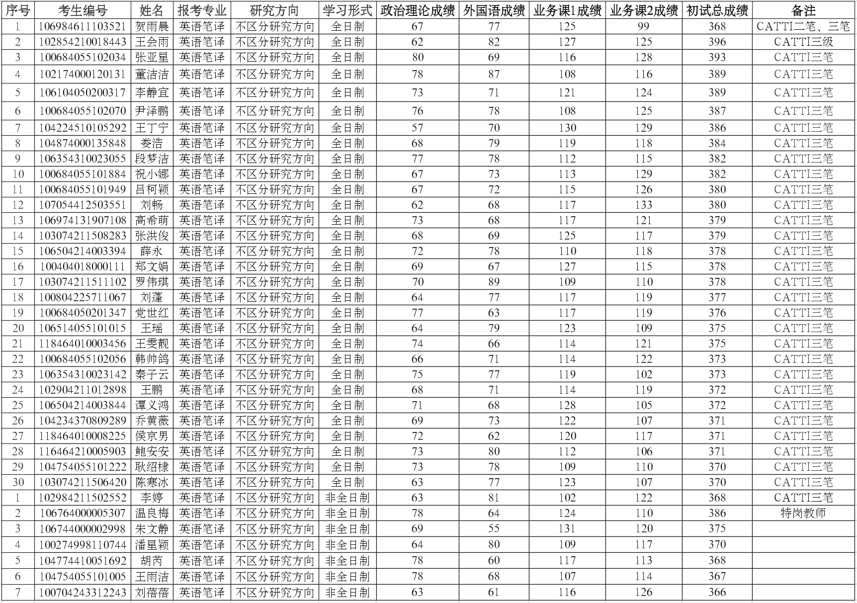 杏吧视频 英语笔译专业2024年硕士研究生复试名单(调剂)