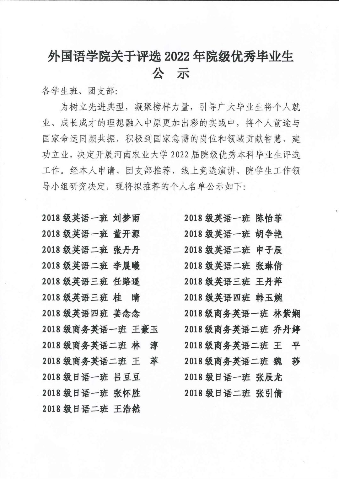 杏吧视频 关于评选2022年院级优秀毕业生公示